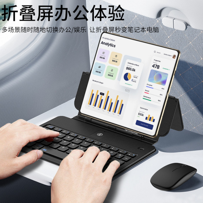 適用華爲matex6鍵盤翻蓋無線滑鼠帶手寫筆翻蓋支架皮套時尚高級感