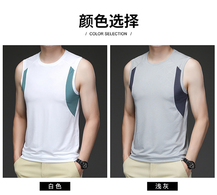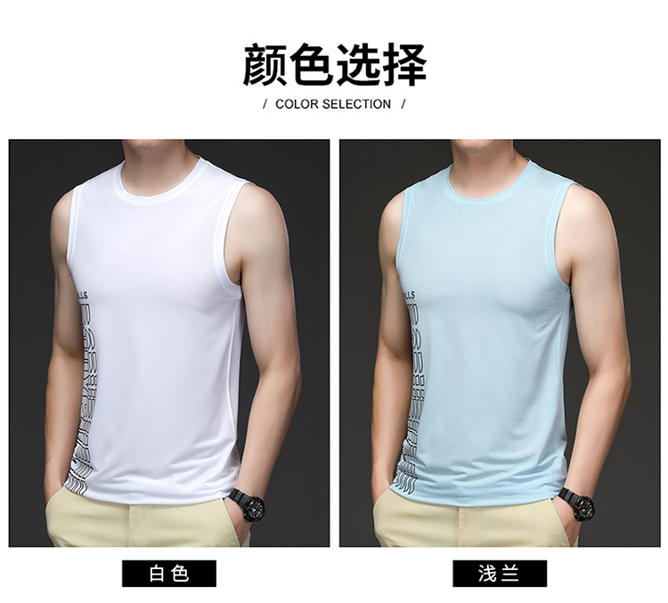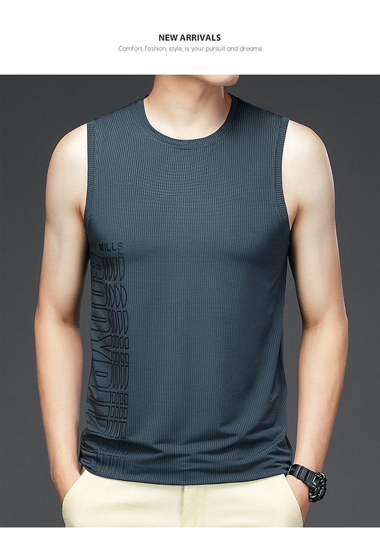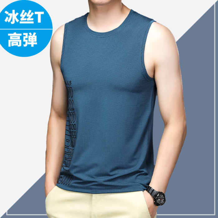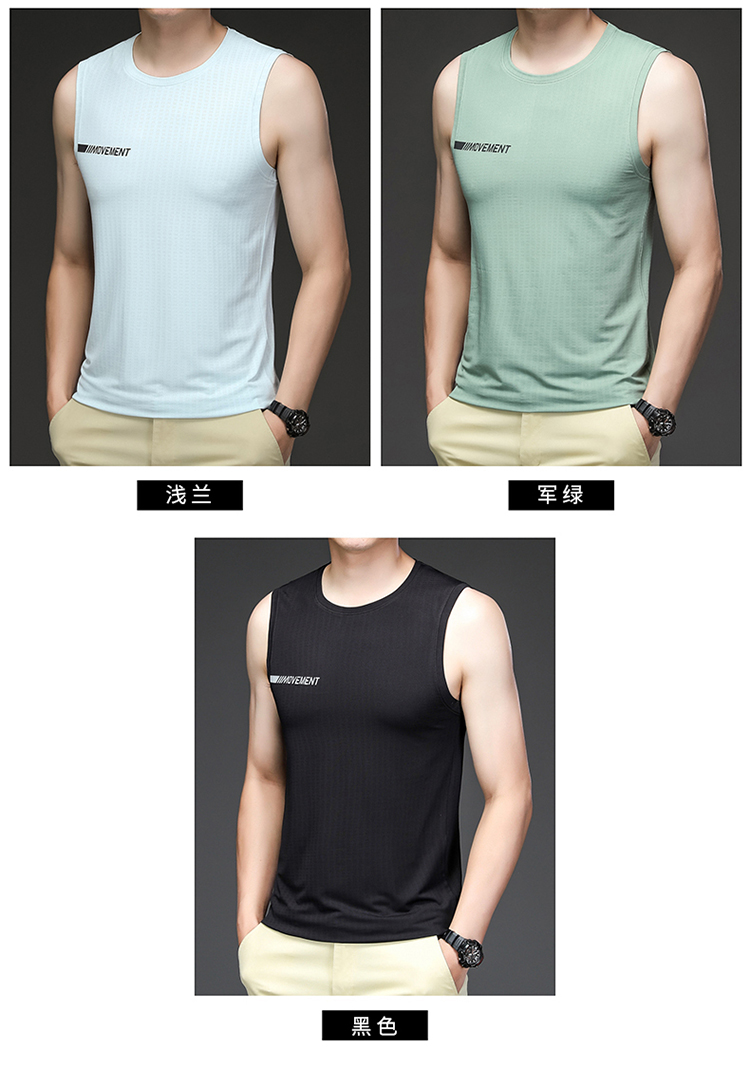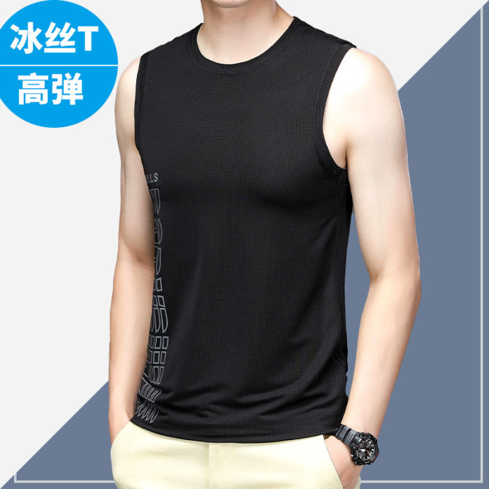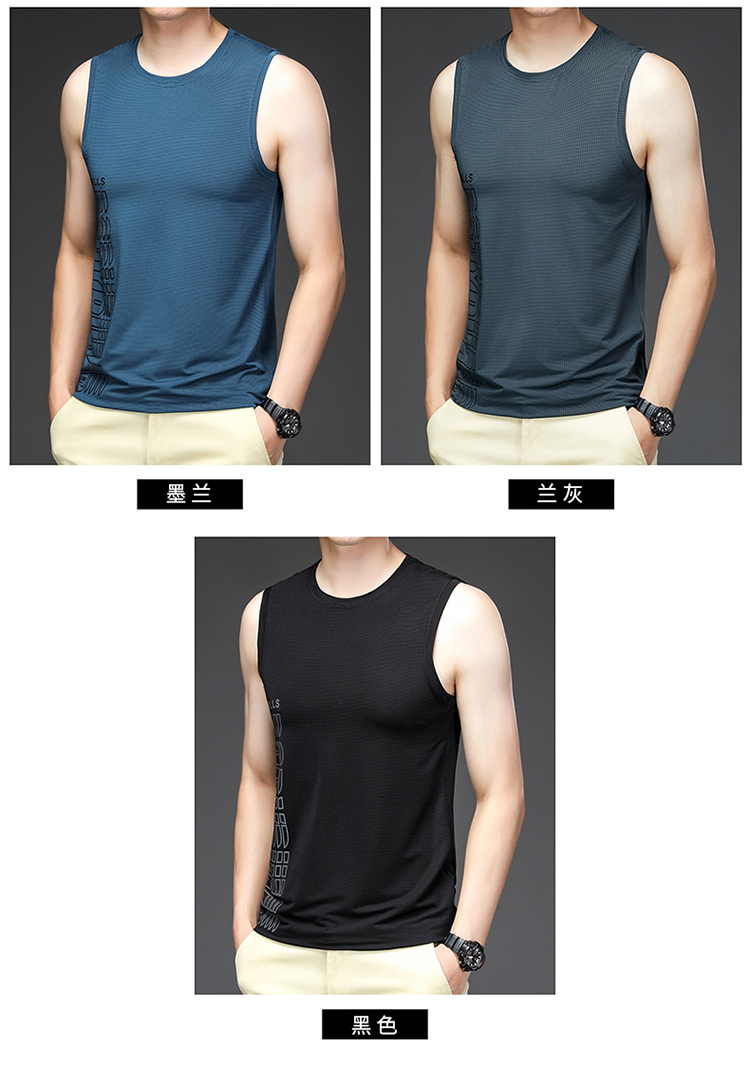 無袖背心男士夏季冰絲薄款圓領潮流時尚速乾透氣清涼坎肩潮男T恤