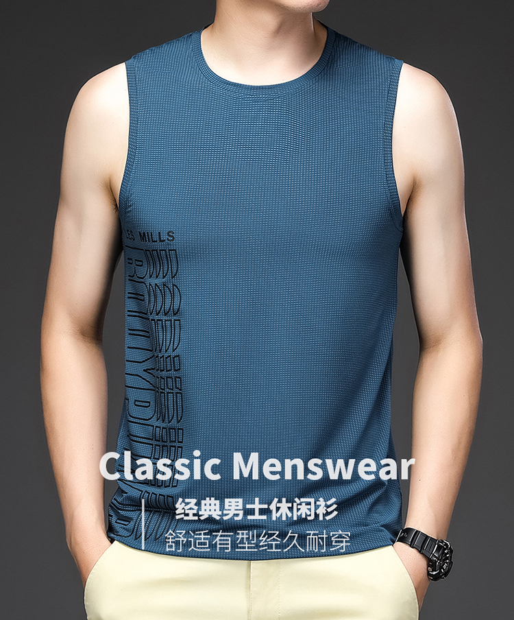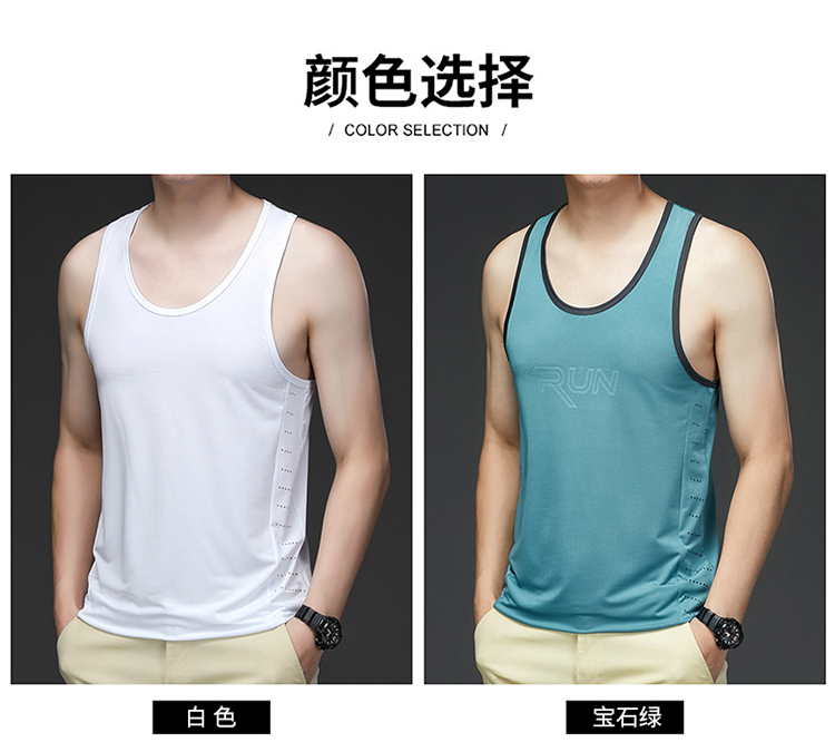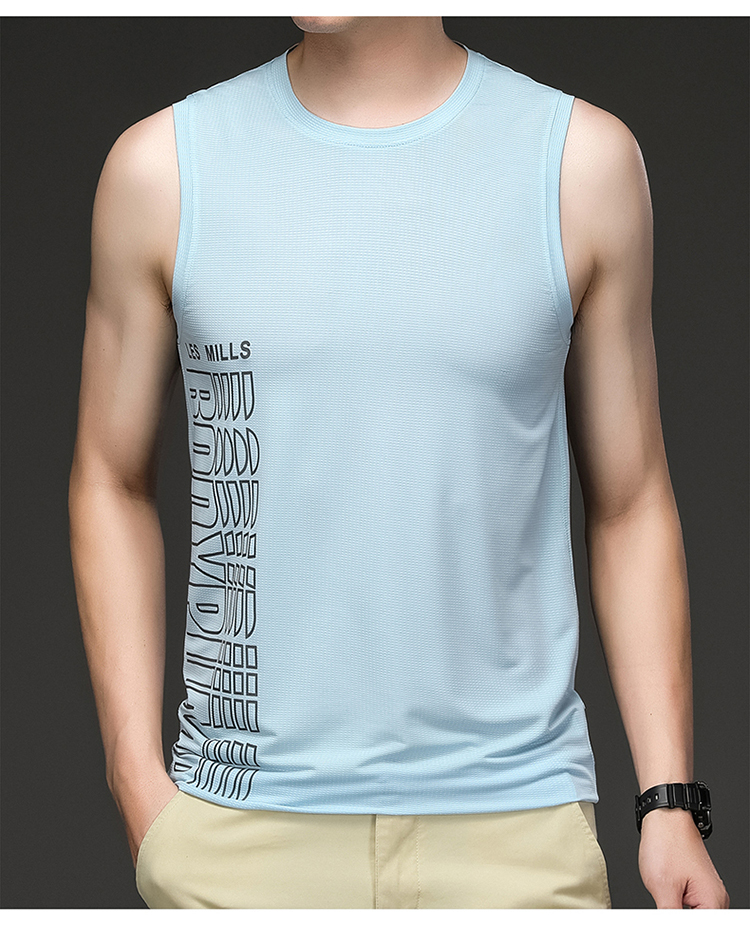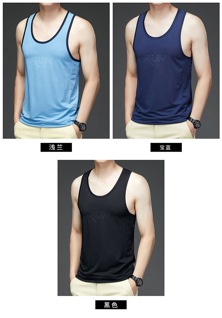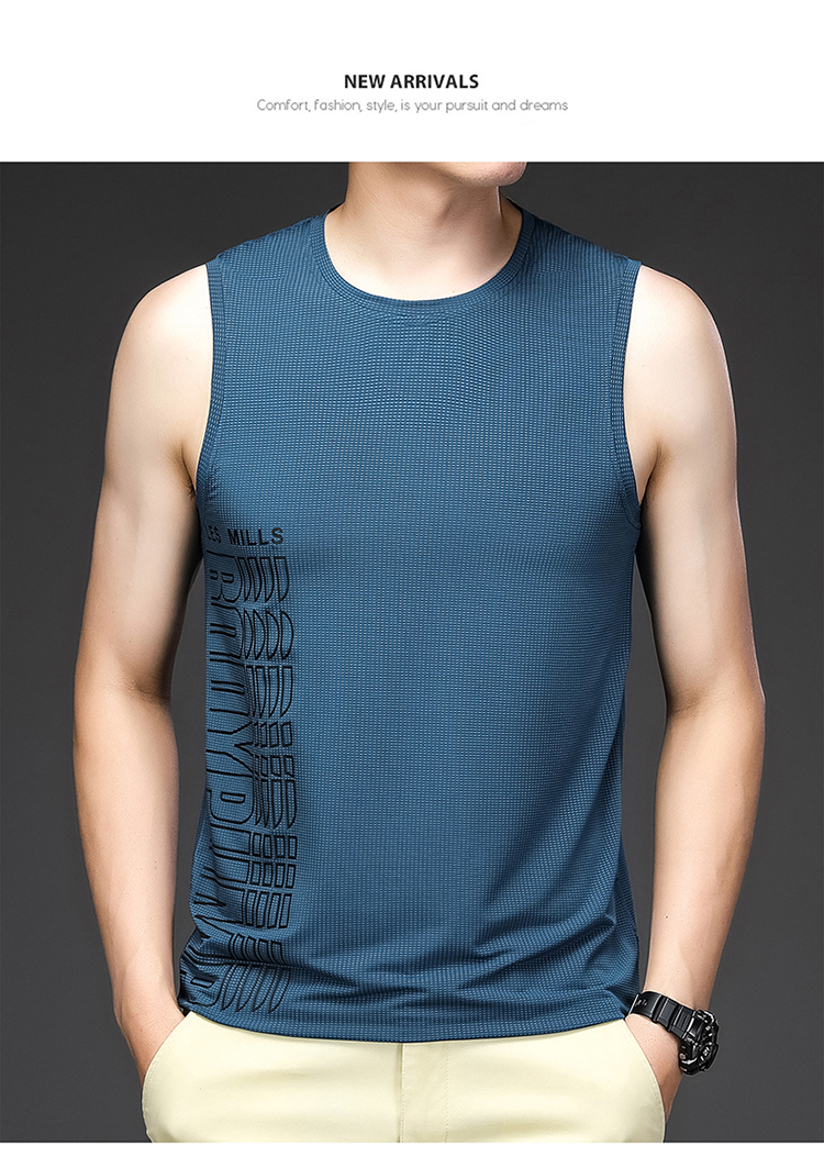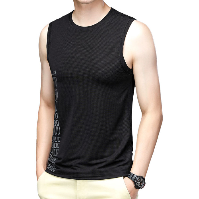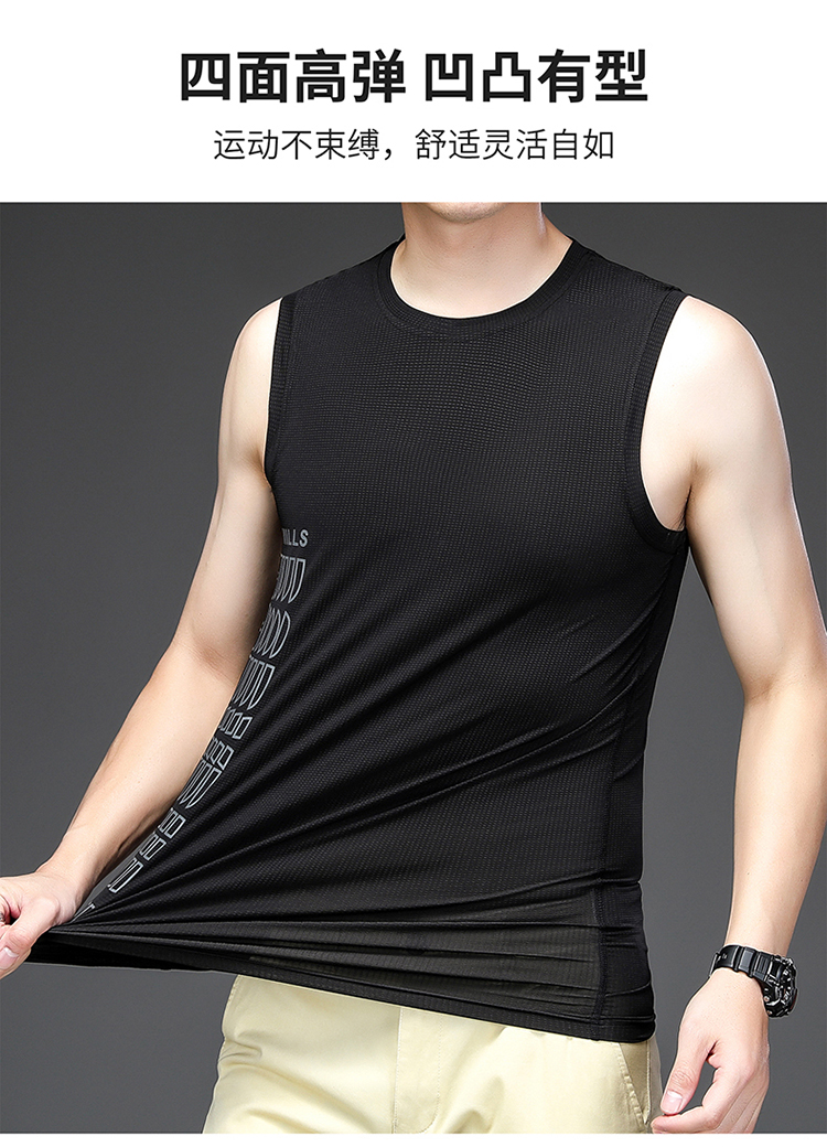 無袖背心男士夏季冰絲薄款圓領潮流時尚速乾透氣清涼坎肩潮男T恤