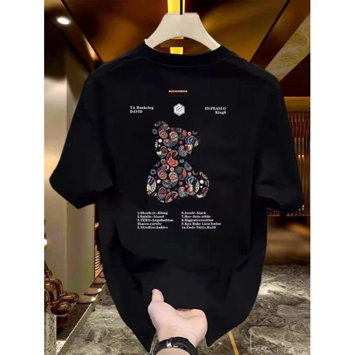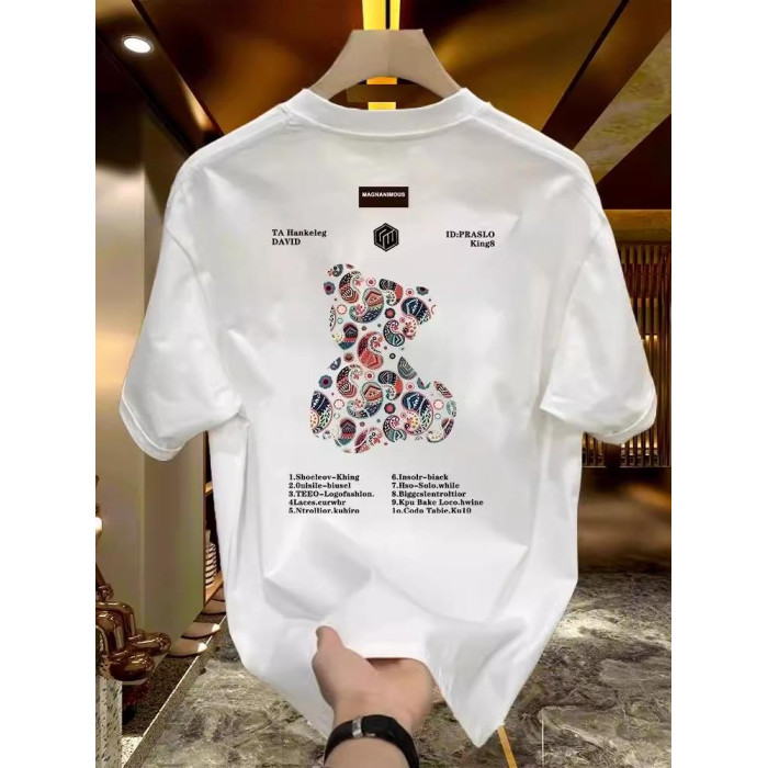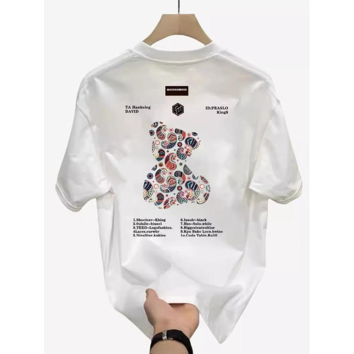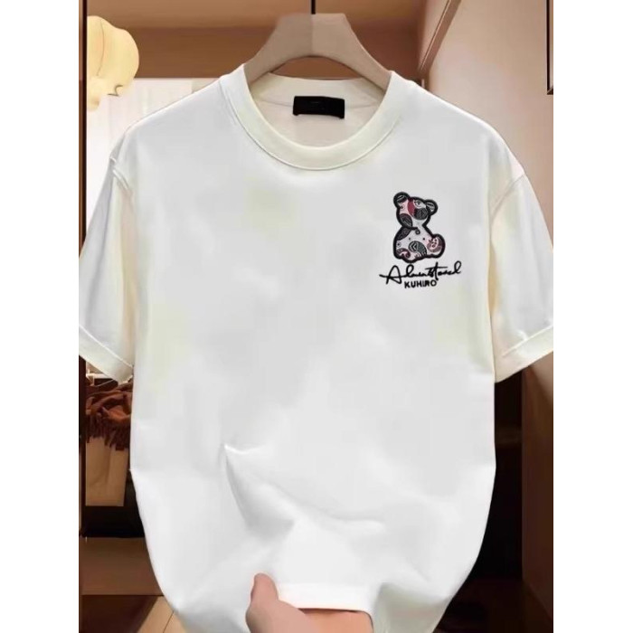 香港潮牌網紅熊純棉男t恤短袖純色寬松簡約印花上衣百搭圓領體恤