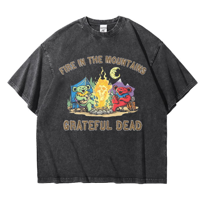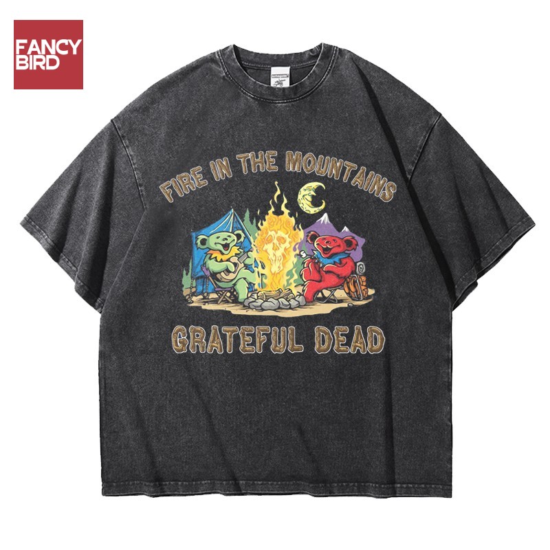 感恩而死歐美搖滾樂隊舊水洗重磅oversize寬松純棉五分短袖男T恤