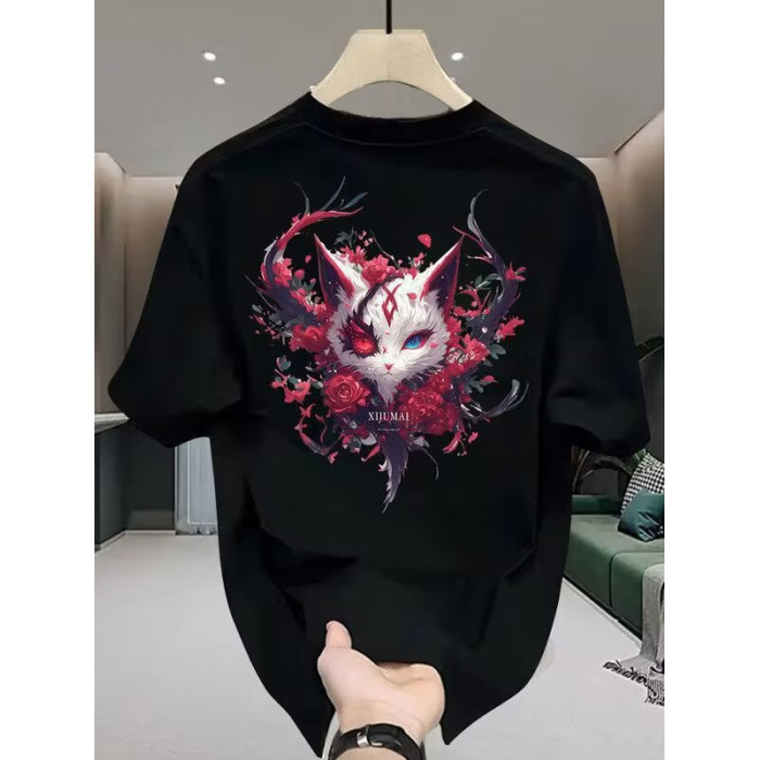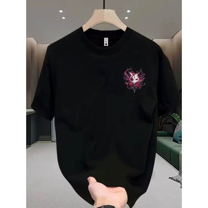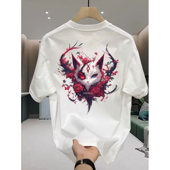 重磅純棉短袖男t恤夏季新款時尚休閒百搭潮牌卡通印花圓領上衣服