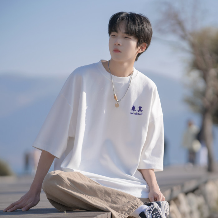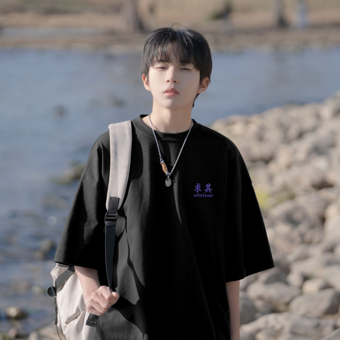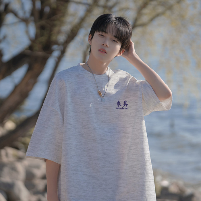 ins小衆潮牌重磅純棉260g粵語文化衫短袖半袖夏季男t恤寬松上衣
