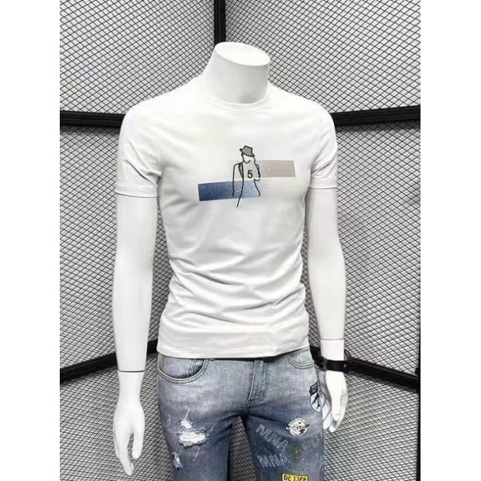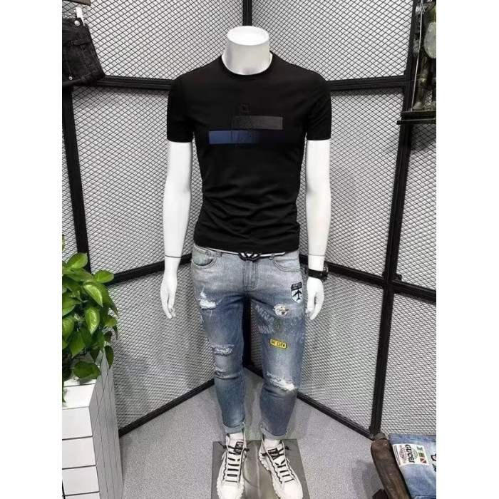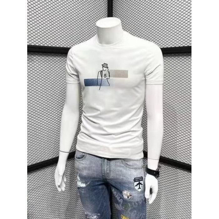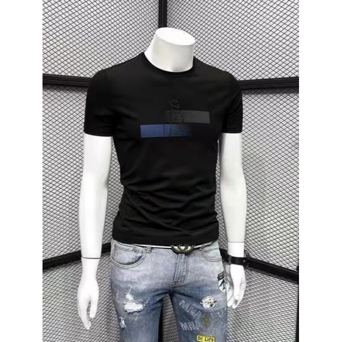 2025新款夏季短袖男t恤潮牌修身體恤衫印花圓領休閒半袖潮流上衣