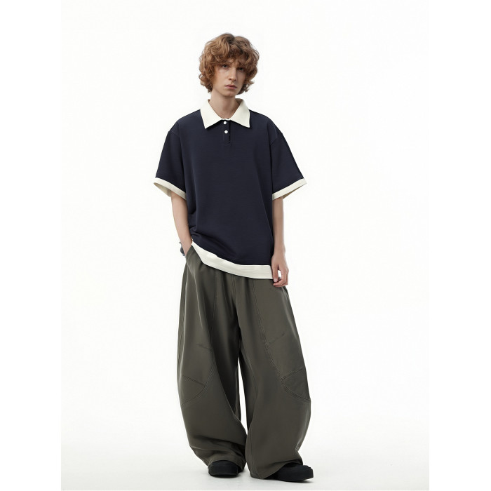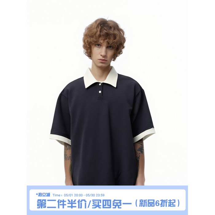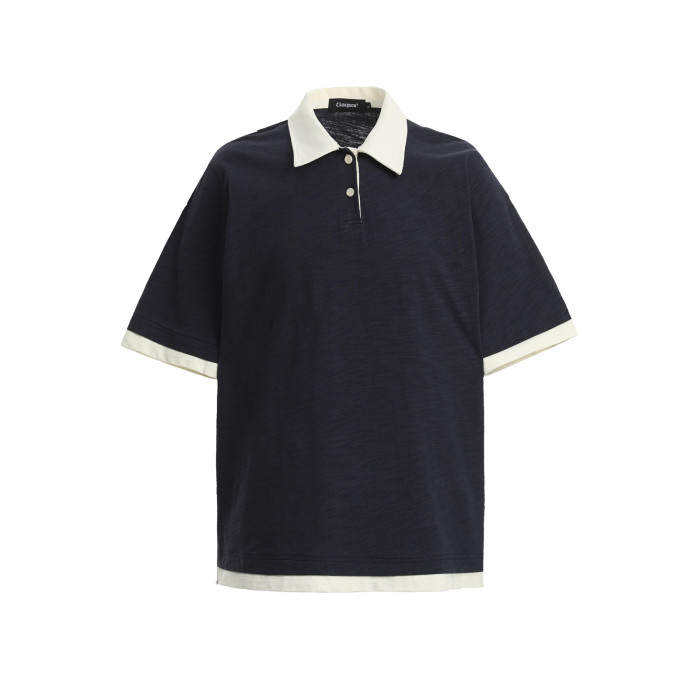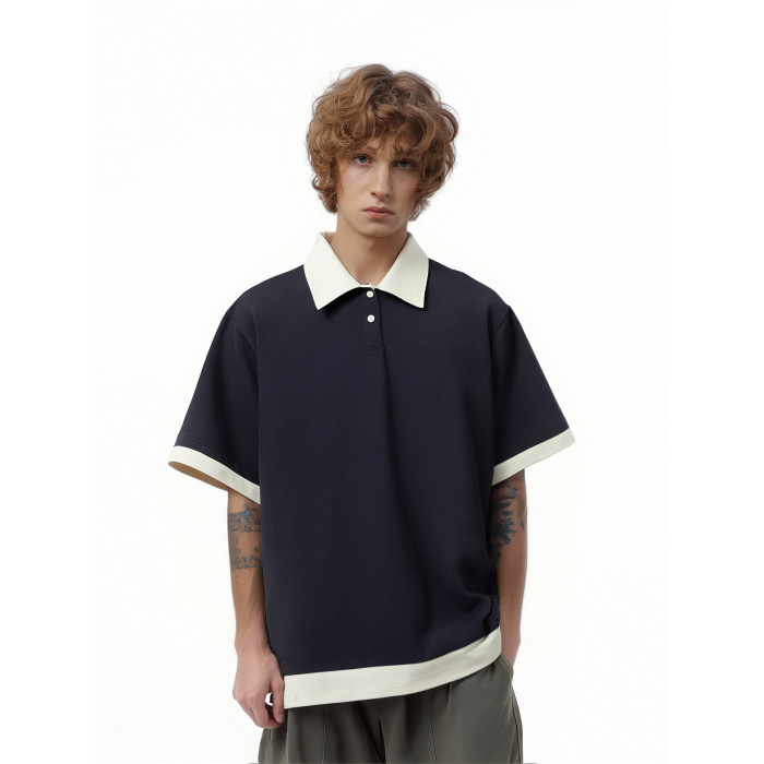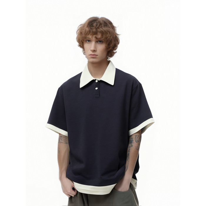 DASONJRINCE*美式復古撞色假兩件高級感polo衫紐釦百搭寬松男T恤