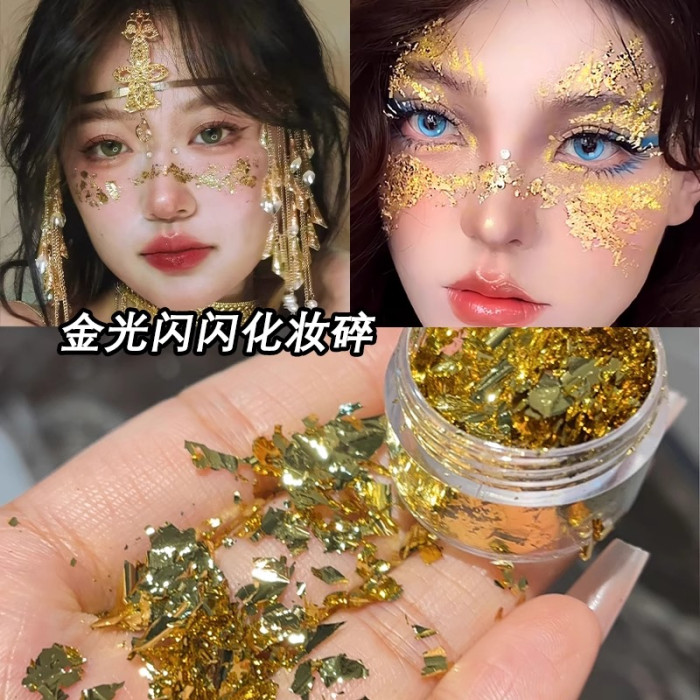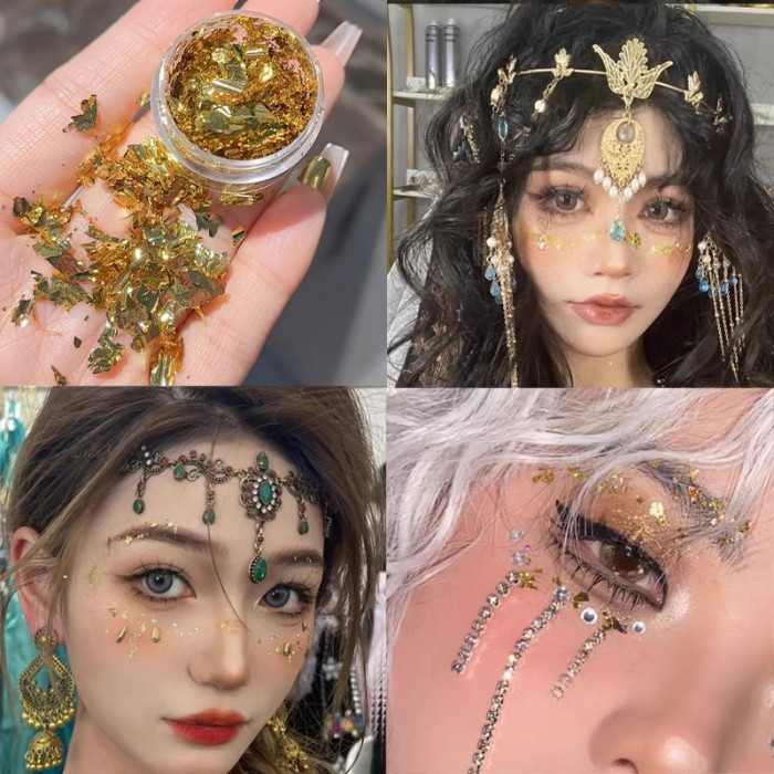 化妝貼臉金色銀色鋁箔紙錫箔碎片面部裝飾品COS創意妝容鏡妖仿妝