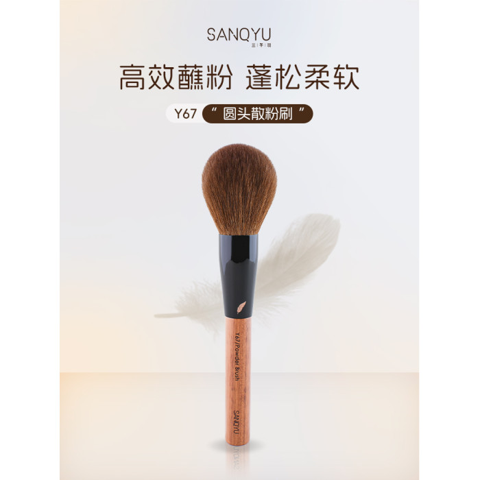 三千羽Y67圓型定妝散粉刷大號超大蓬松動物毛可攜式一支裝化妝刷子