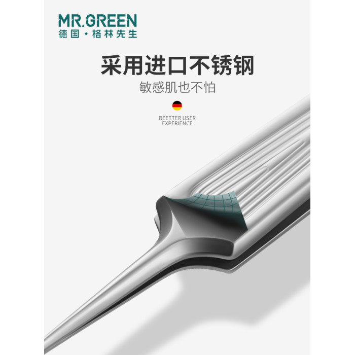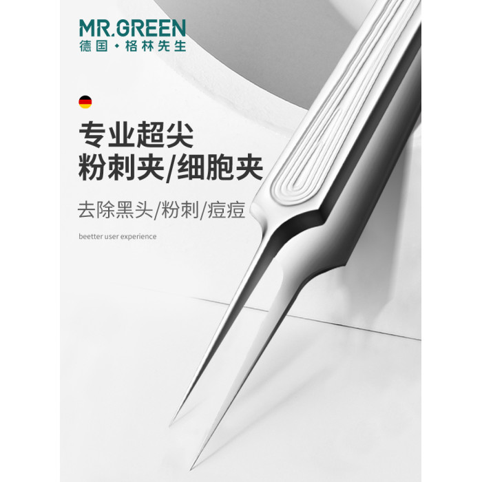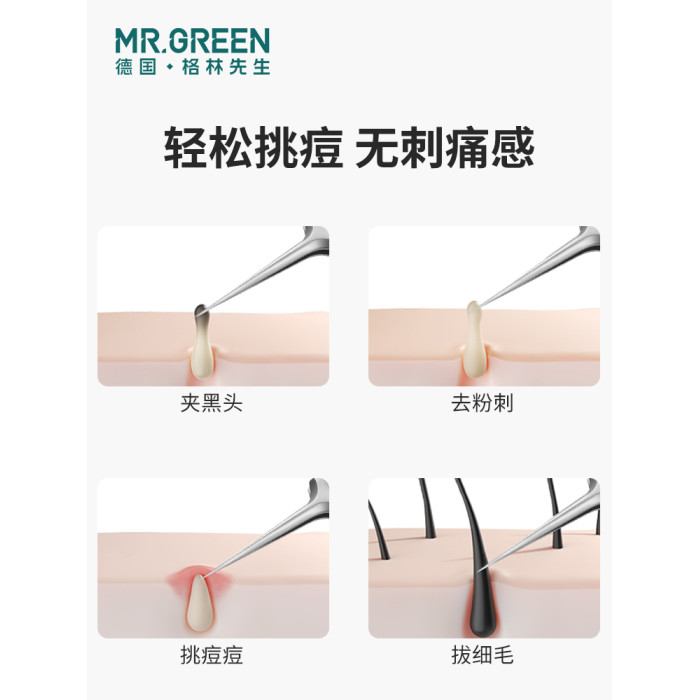 德國MRGREEN細胞夾黑頭粉刺挑痘痘針工具超細超尖夾子祛暗瘡美容