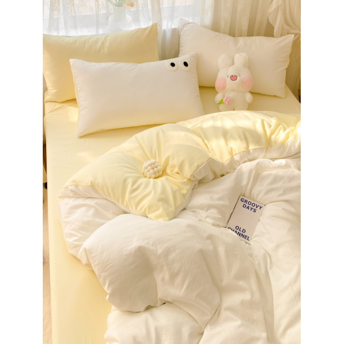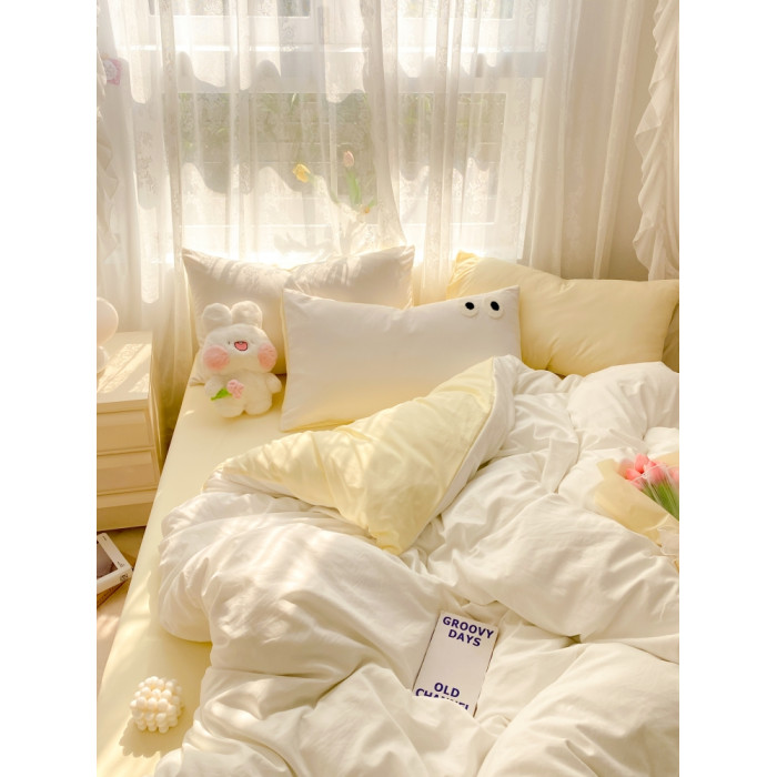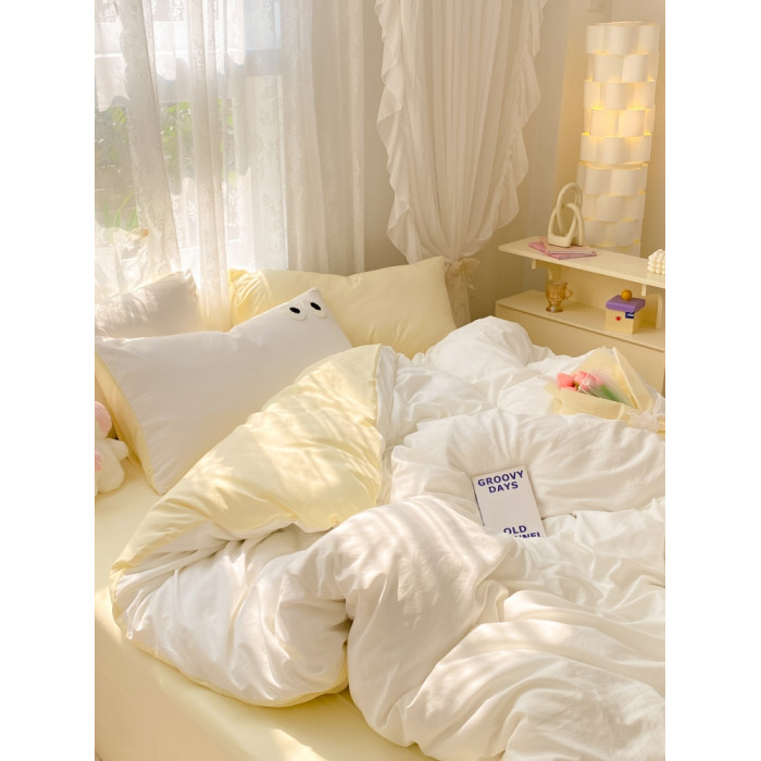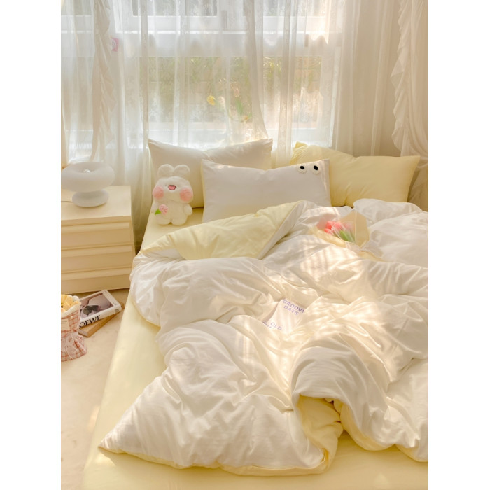 治瘉少女系起司奶白雙拼床單四件套柔軟水洗棉被套被單宿舍三件套