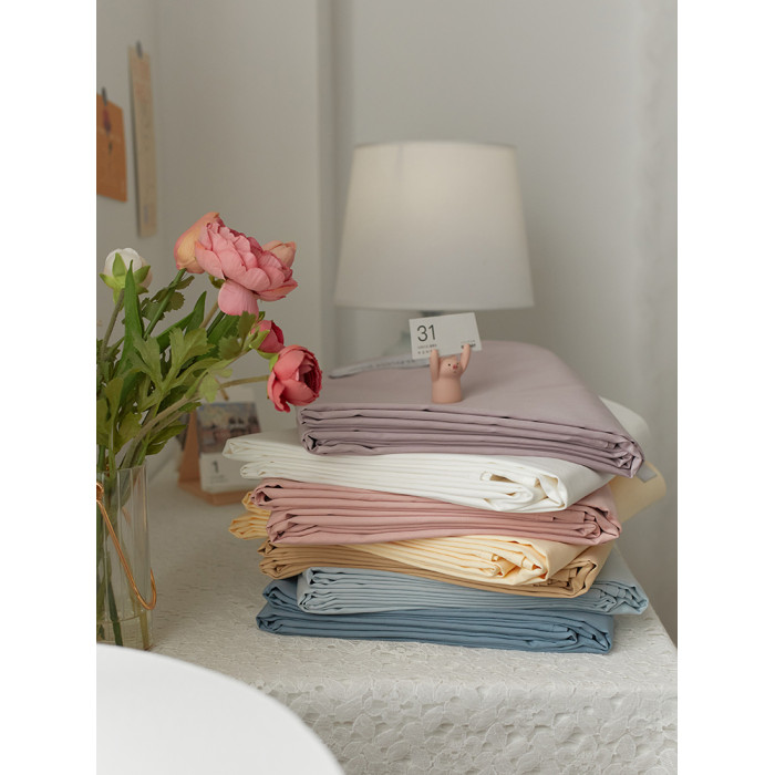 100支新疆長絨棉純棉床單單件全棉雙人床純色枕套三件套床笠被單