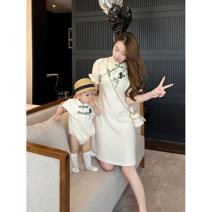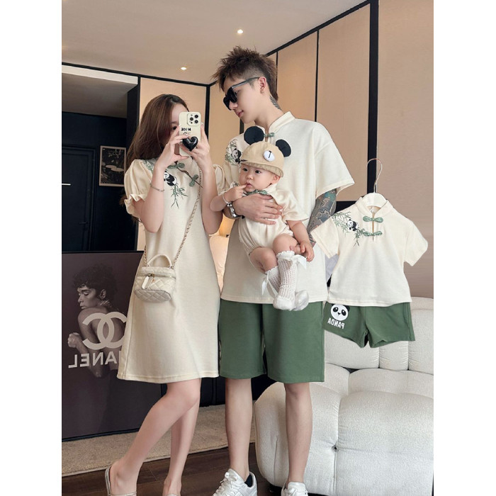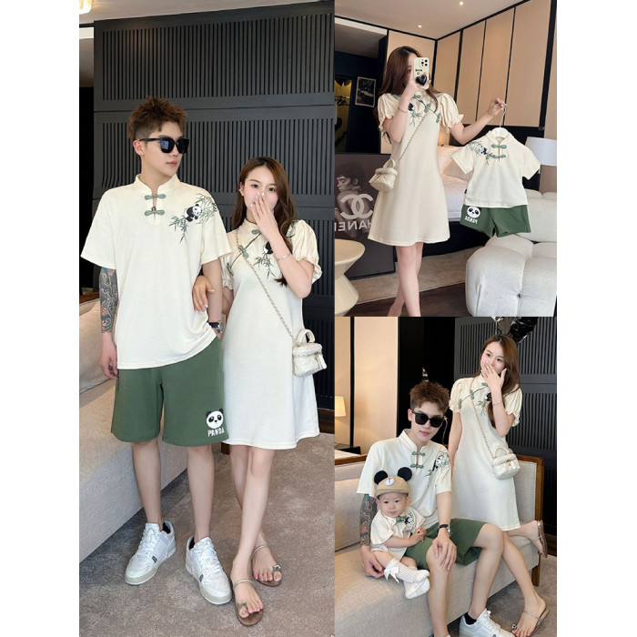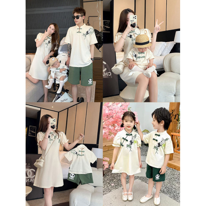 特別的國風親子裝短袖POLO衫一家三口唐裝旗袍新款炸街母女連衣裙