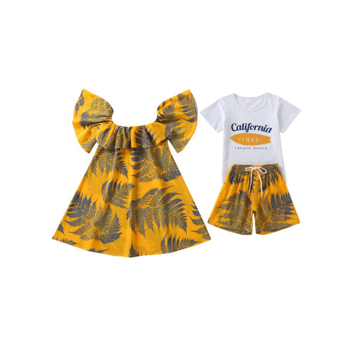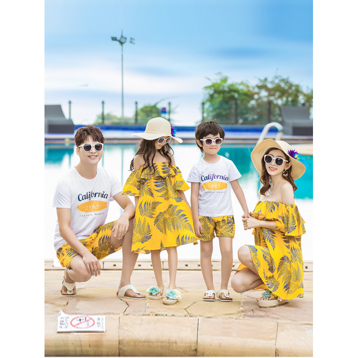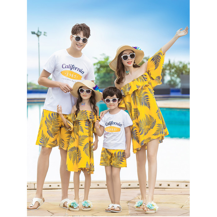 沙灘親子裝海邊度假一家三四口套裝母女裝洋氣連衣裙海南三亞衣服