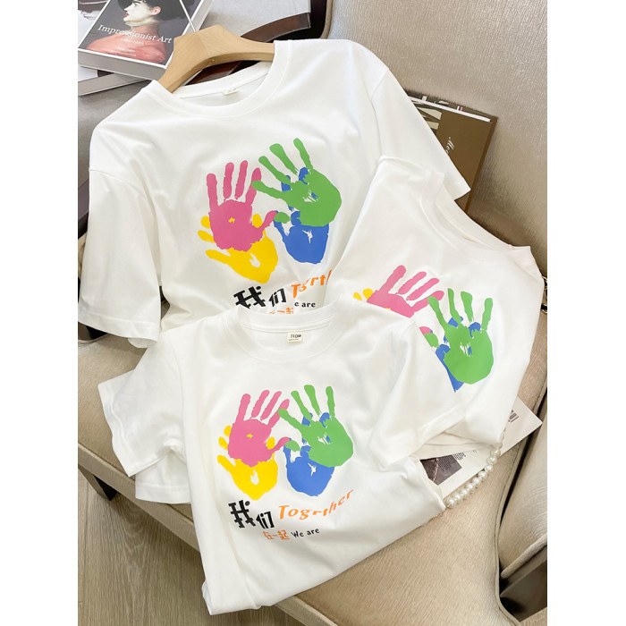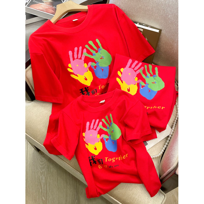 親子裝夏季一家三口2025新款潮母子母女洋氣t恤純棉短袖家庭四口