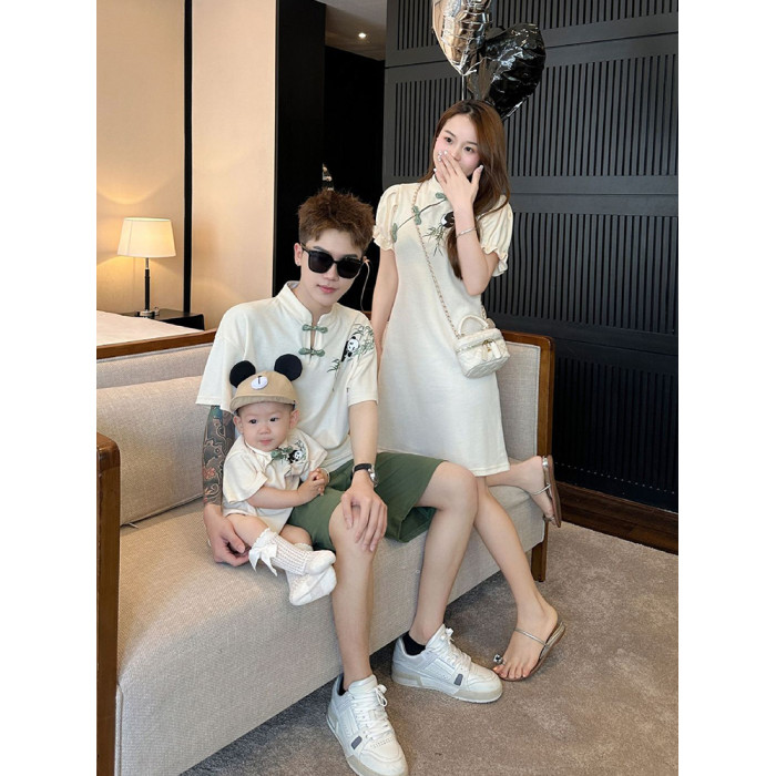 風親子裝一家三口夏裝漢服母子母女裝小月齡嬰兒T恤連衣裙潮