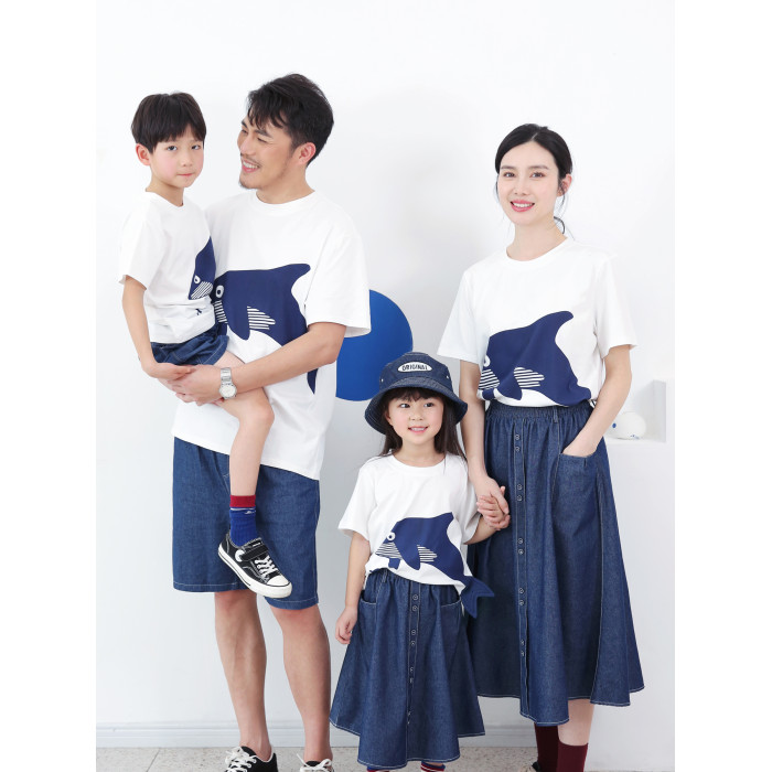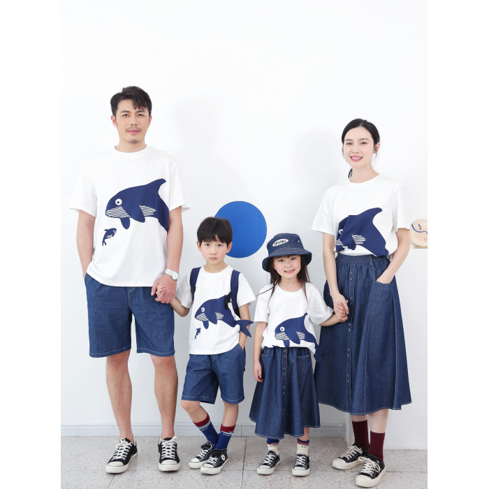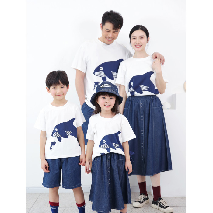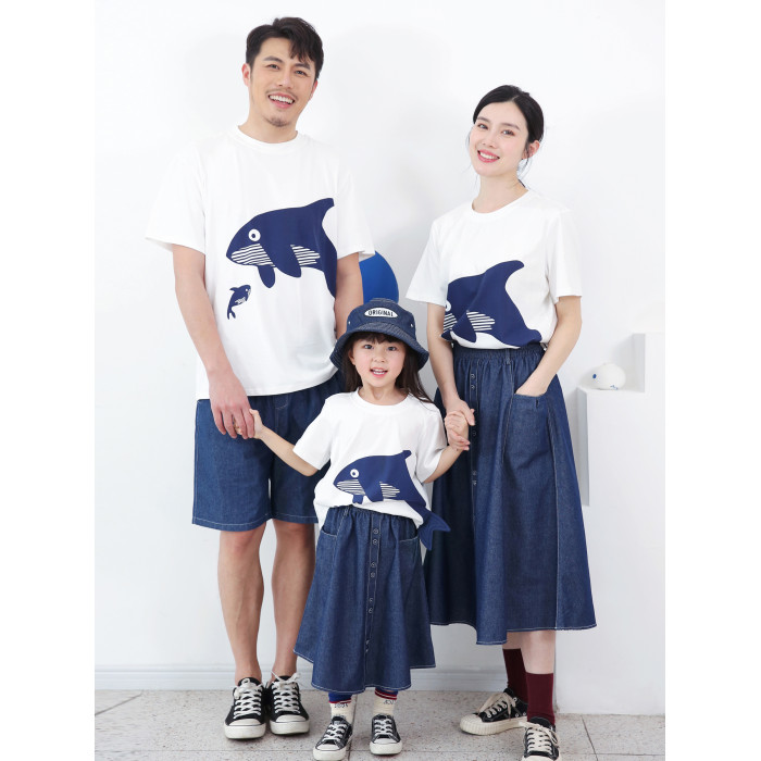 2025夏裝新款純棉寬松洋氣鯨魚T恤親子裝/高級一家三口四口全家裝