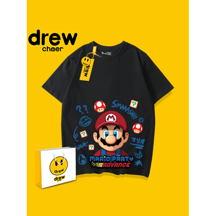 馬裡奧親子裝t恤一家三口四口短袖純棉夏季寬松洋氣潮牌母子母女
