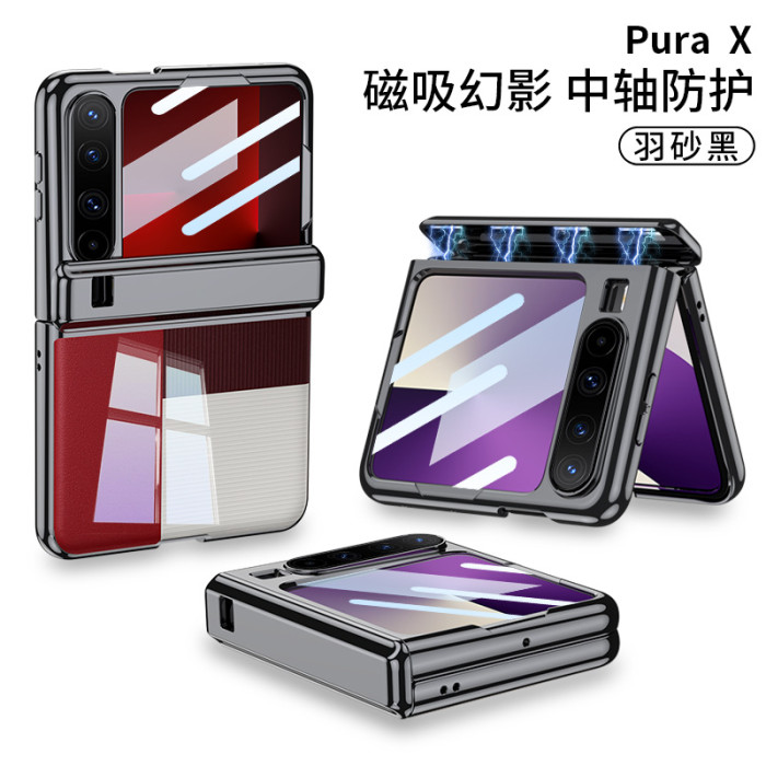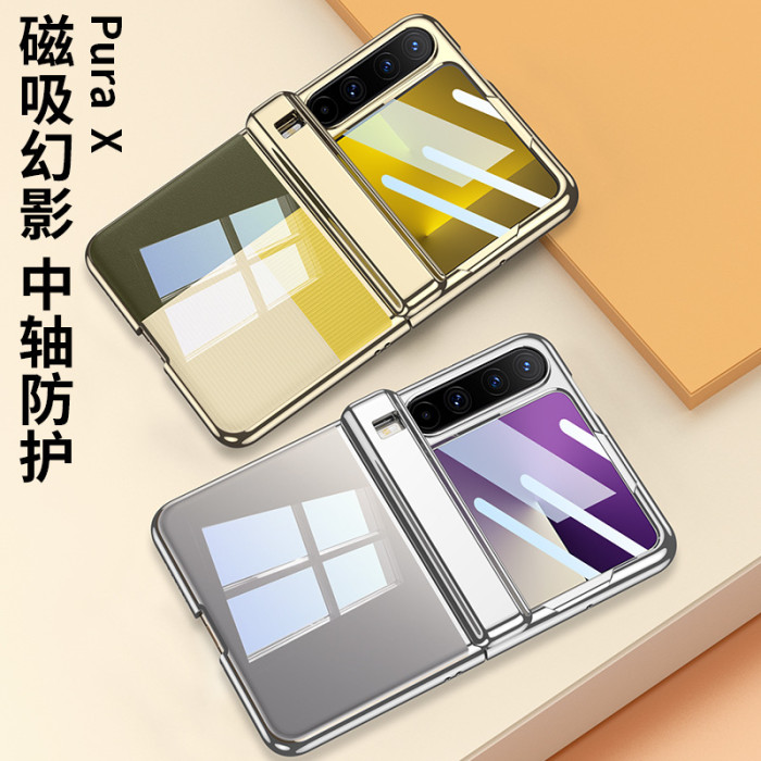 華爲PuraX殼膜一體手機殼適用Pura X保護殼透明磁吸鉸鏈電鍍硬殼