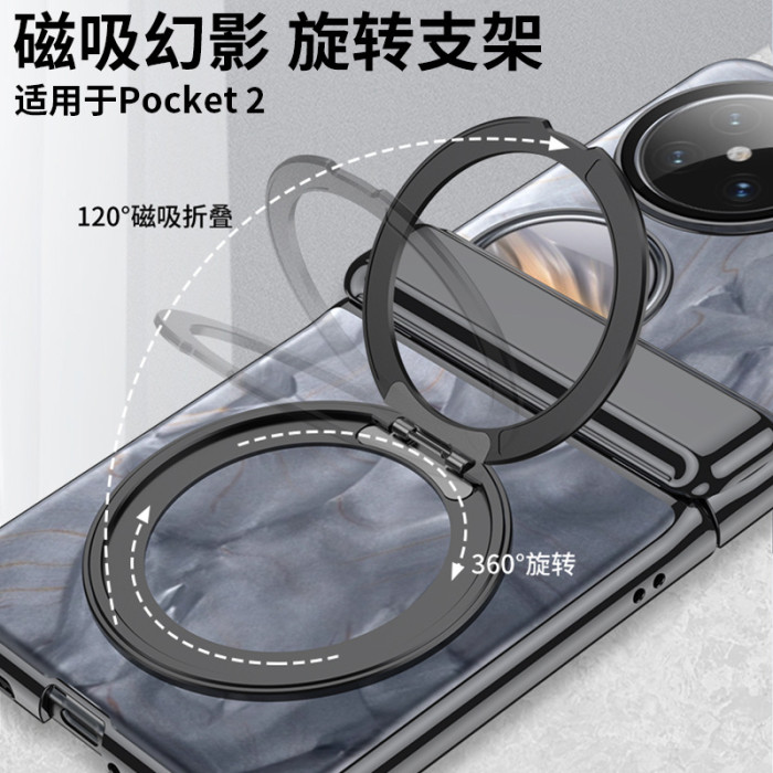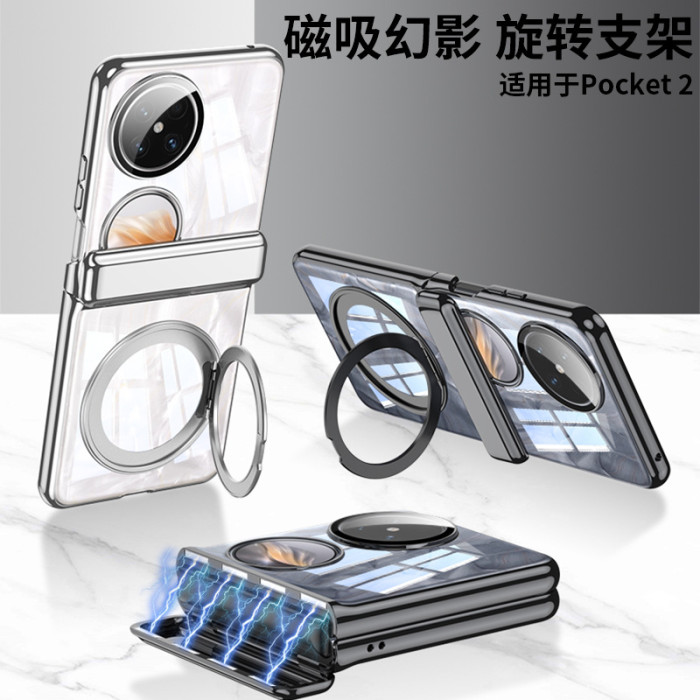 適用華爲Pocket2典藏版手機殼摺疊螢幕保護套透明鉸鏈磁吸旋轉指環