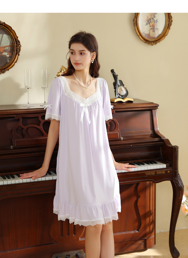 少女春夏薄款甜美棉復古宮廷短袖短款睡裙可愛公主寬松仙女睡衣