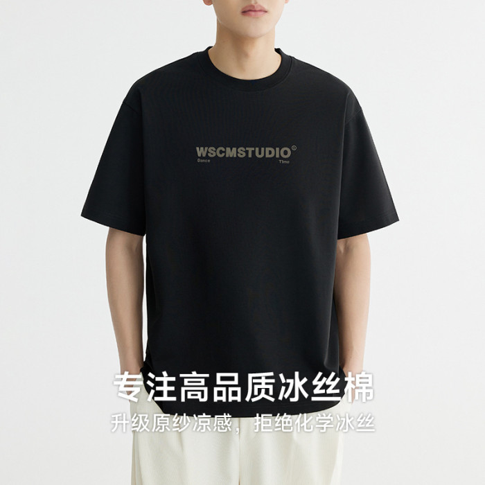 速乾冰絲棉 圓領印花涼感男t恤短袖夏季新款潮透氣半袖體恤衫