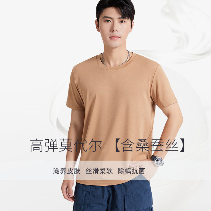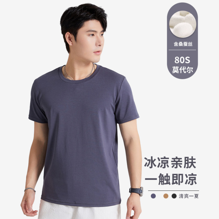 短袖男士t恤純色圓領薄款蠶絲重磅體恤簡約休閒男裝短袖男T恤常規