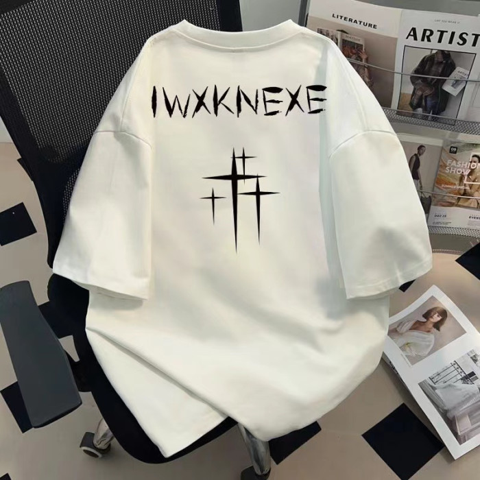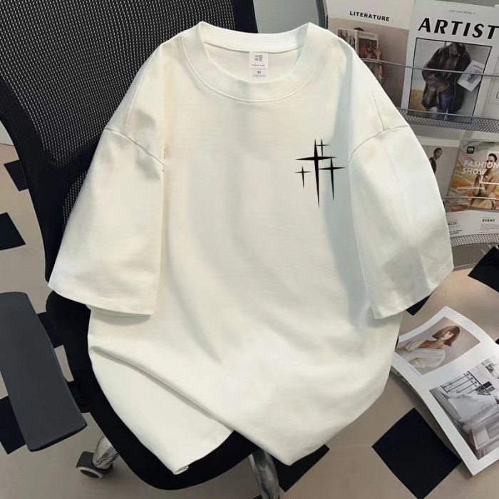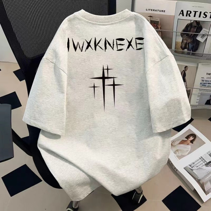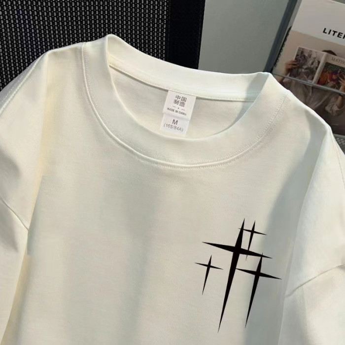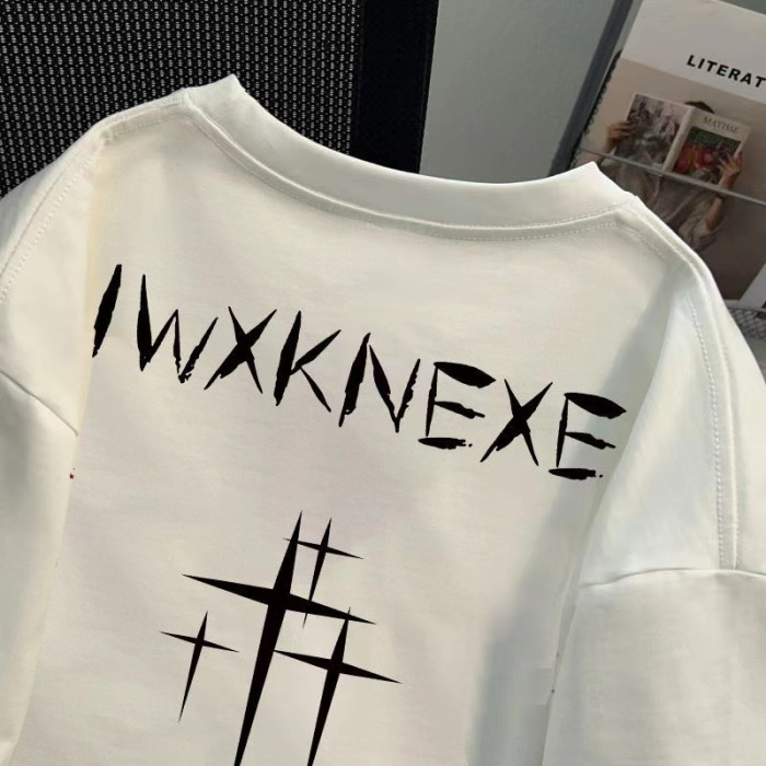美式潮牌街頭hiphop十字架印花短袖男T恤夏季高街帥氣青少年上衣
