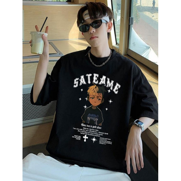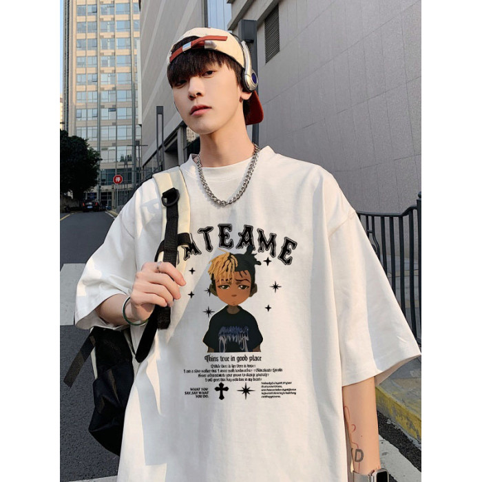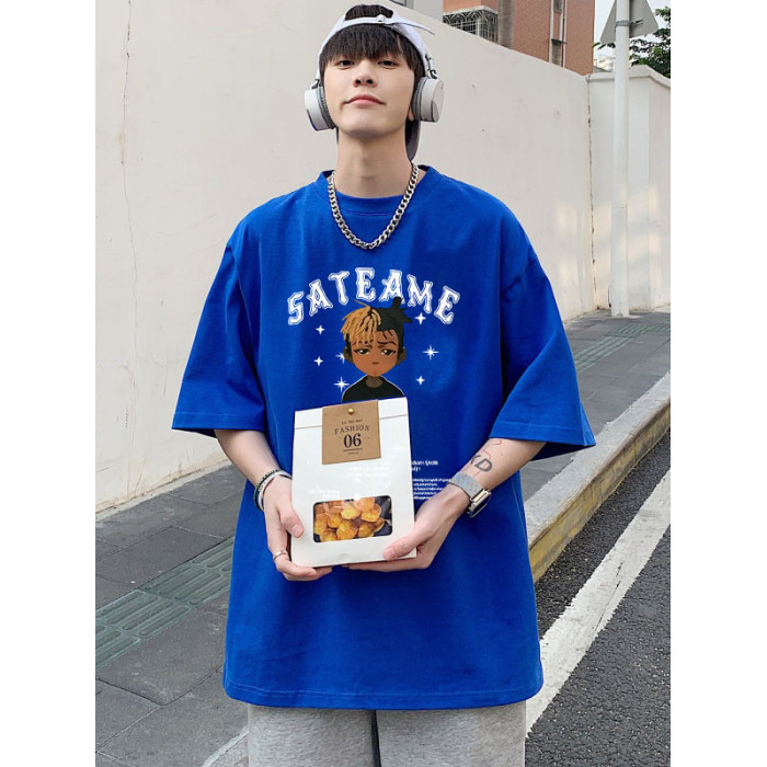 100%純棉短袖男t恤夏季新款潮牌復古印花青少年ins潮流痞帥半袖衫