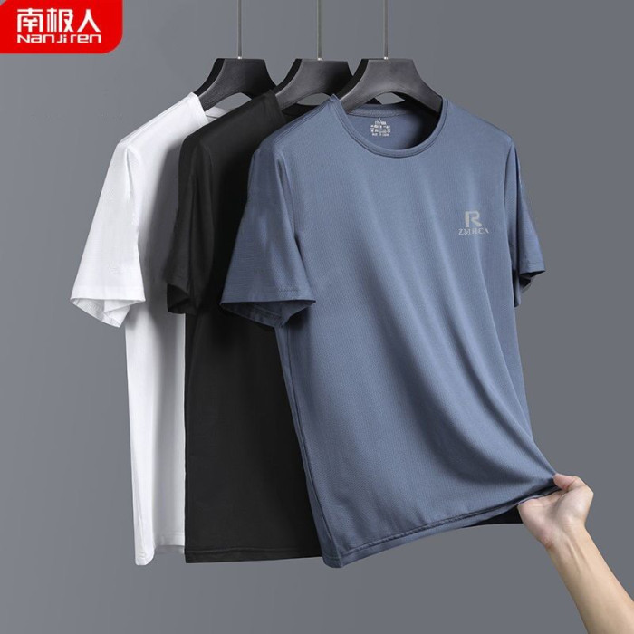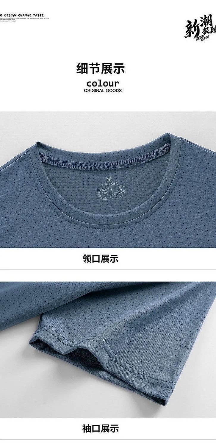 南極人夏季冰絲男t恤新款男士網眼短袖t恤衫男百搭休閒潮流男t恤