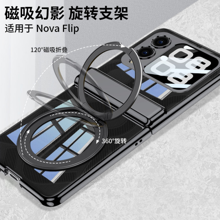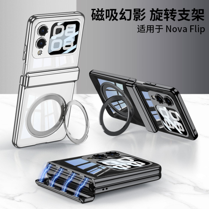 適用於華爲novaflip手機殼電鍍透明強力磁吸無線充旋轉支架保護套