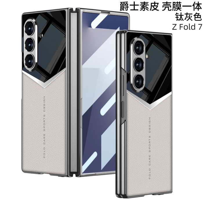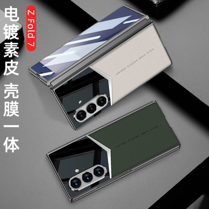 適用三星Fold7手機殼摺疊螢幕素皮殼膜一體爵士商務皮紋電鍍時尚男