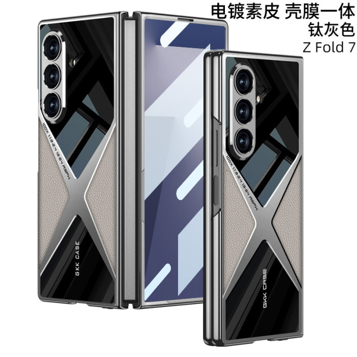 適用三星Z Fold7手機殼電鍍素皮殼膜一體超音速防摔保護套男