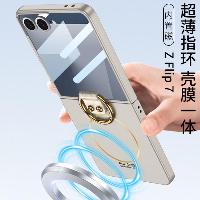 適用三星Z flip7手機殼超薄磁吸圈無線充折曡指環flip7時尚保護套