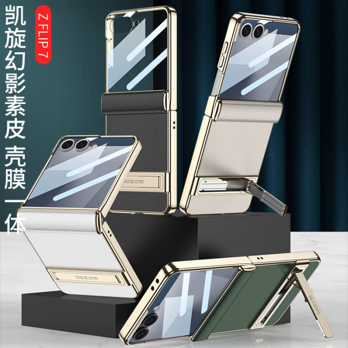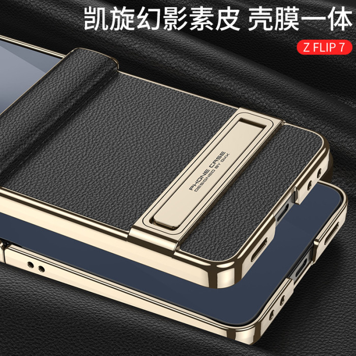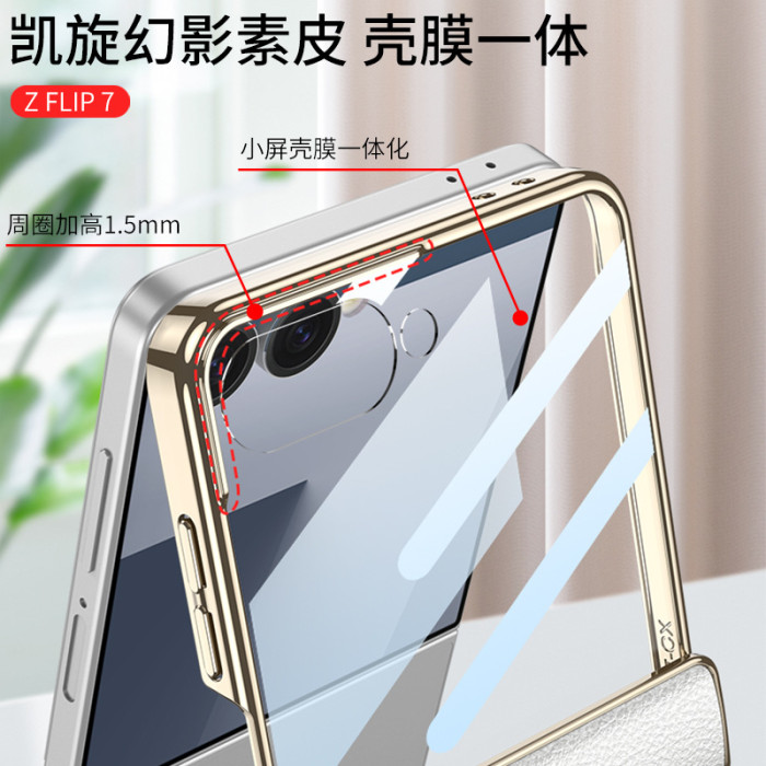 適用三星z flip7手機殼磁吸折曡轉軸全包殼凱旋電鍍素皮手機殼GKK