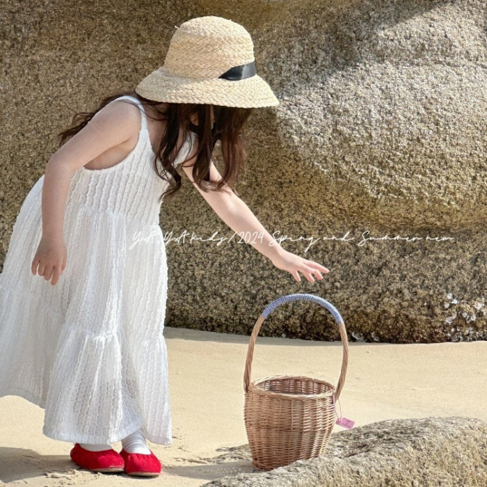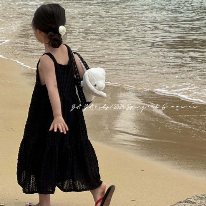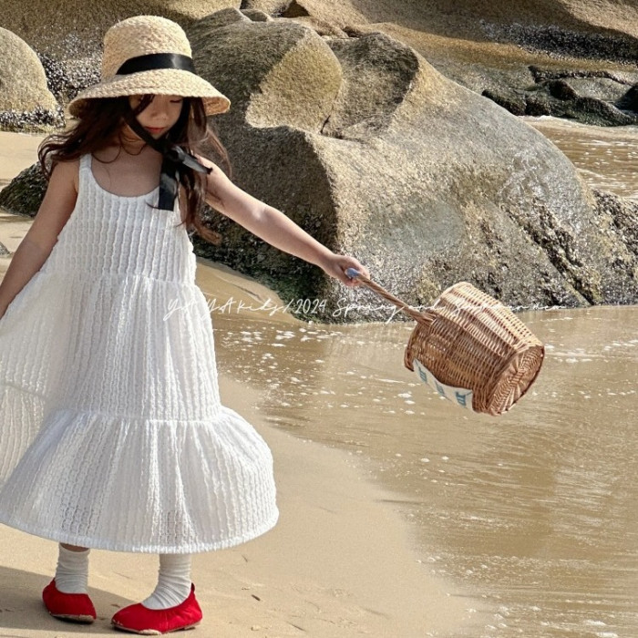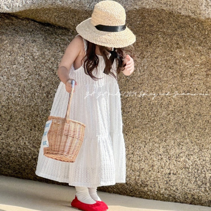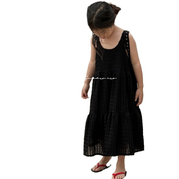 女童吊帶裙2024春夏新品兒童拼接氣質蛋糕裙簡約風長裙夏季連衣裙