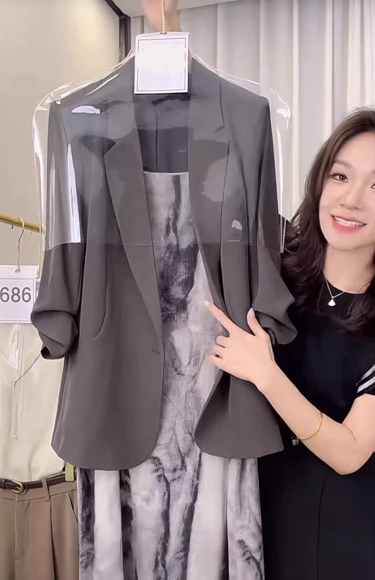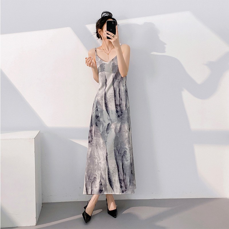 【】春夏新款大碼女裝微胖mm小西裝水墨吊帶裙兩件套裝6055