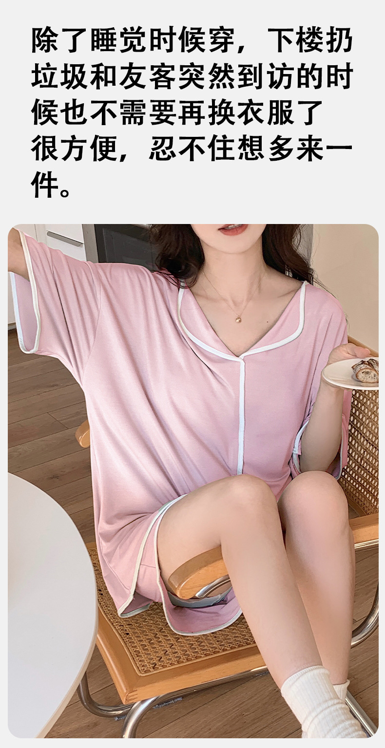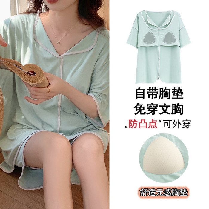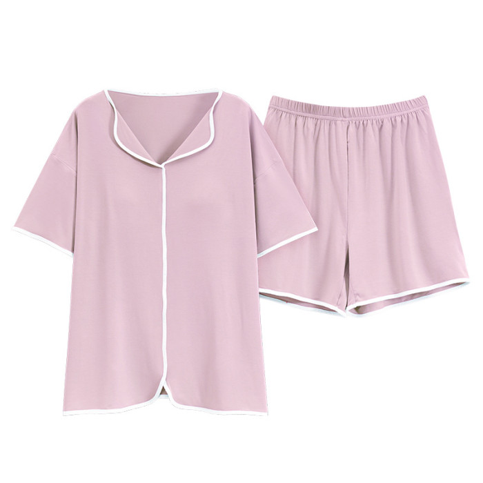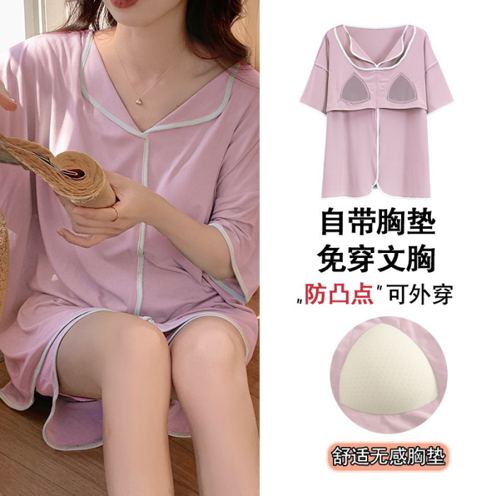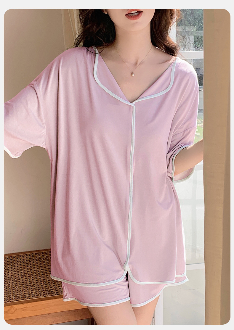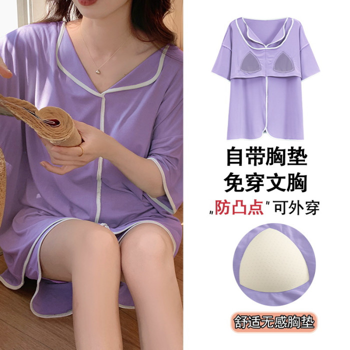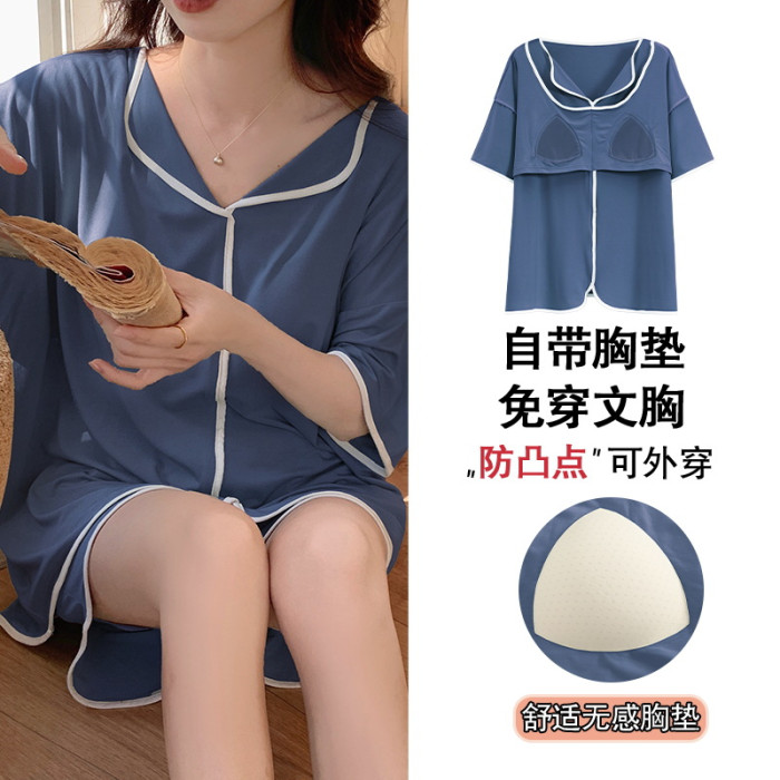 睡衣女自帶胸墊夏季短袖短褲莫代爾韓版可愛寬松休閒親膚可外穿