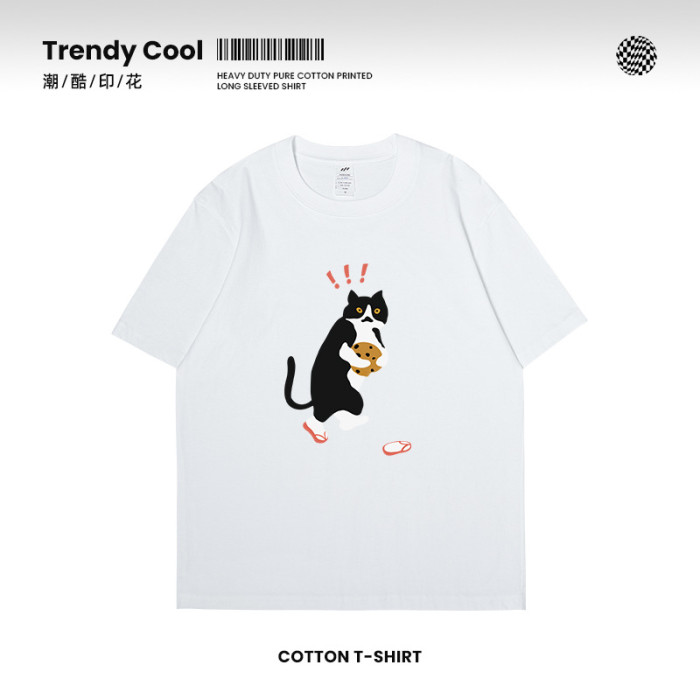 曲奇貓短袖男重磅純棉夏季男士百搭寬松白色休閒半袖打底衫男t恤