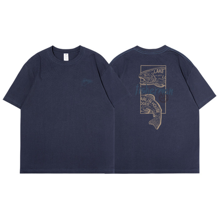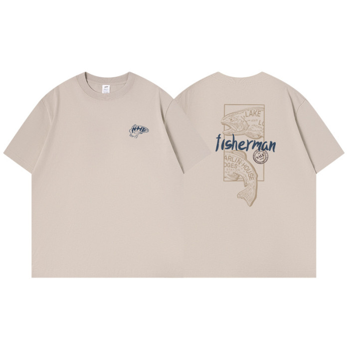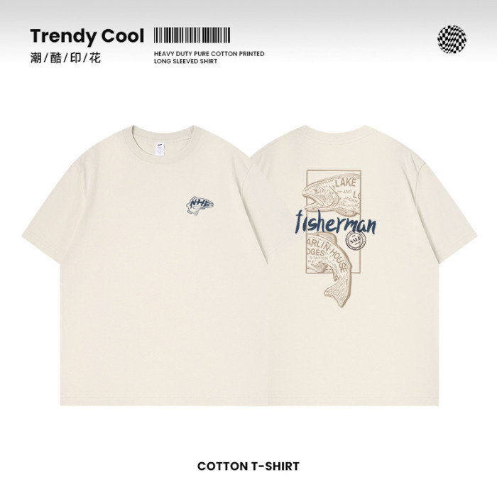 夏季純棉230g短袖男t恤美式潮牌fisherman寬松百搭t恤2025新款男