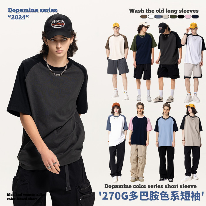 RS男裝|270G重磅插肩袖短袖t恤男女同款ins潮牌純棉短袖t恤男T恤