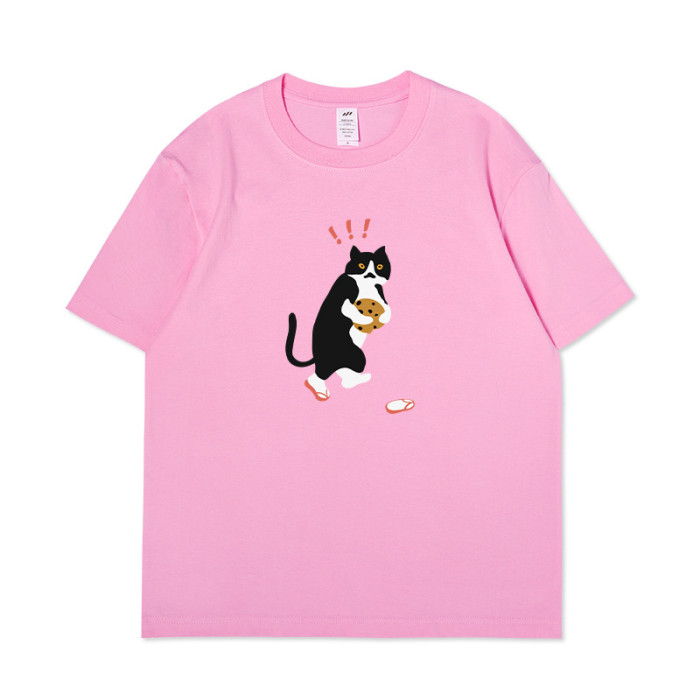 曲奇貓短袖男重磅純棉夏季男士百搭寬松白色休閒半袖打底衫男t恤