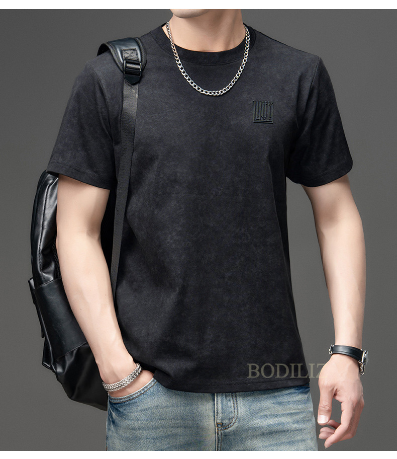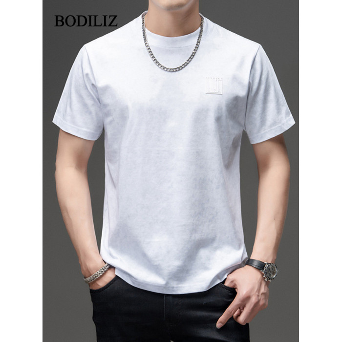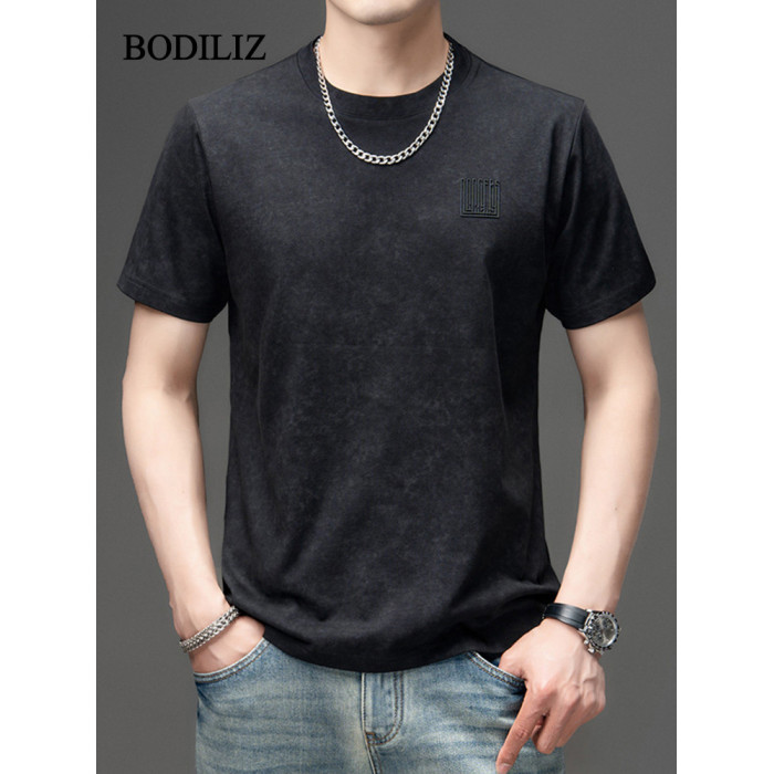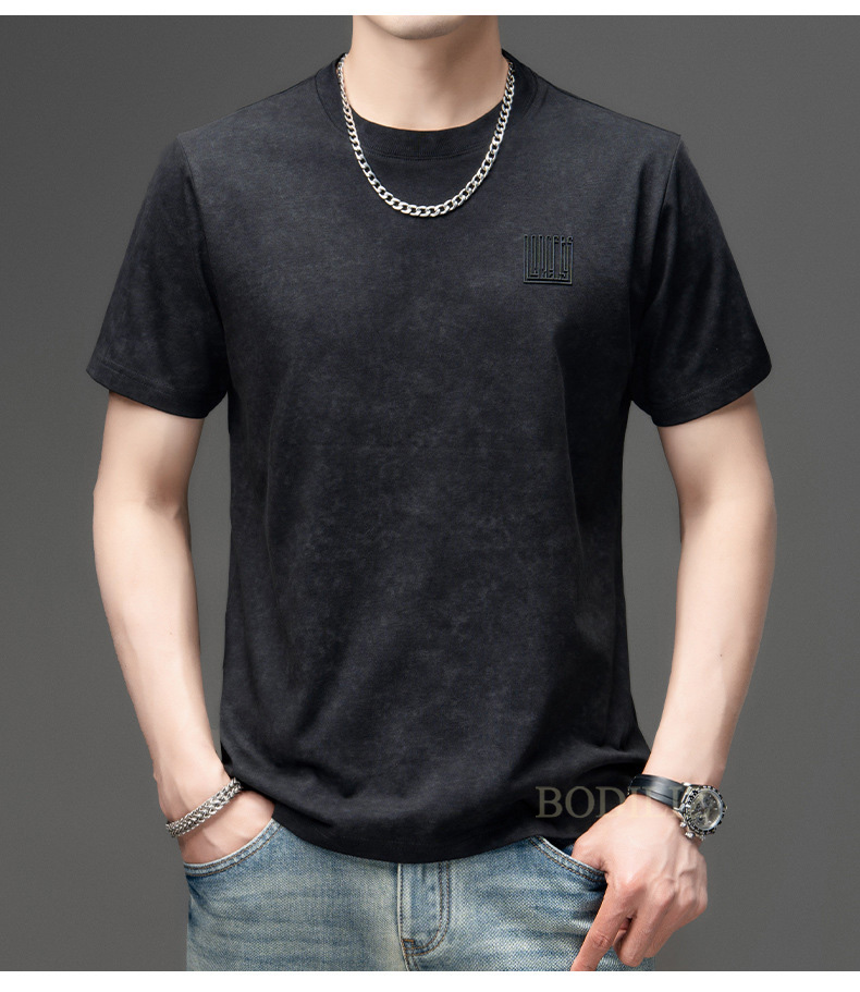 奢侈品牌絲光棉刺綉黑色短袖t恤男夏款潮男寬松透氣涼感潮流體恤