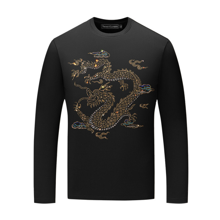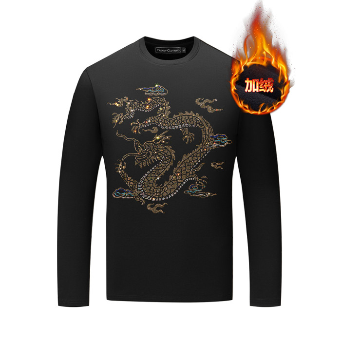 冬季打底衫男2025新款長袖男t恤燙鑽龍頭重磅潮牌修身保暖上衣服