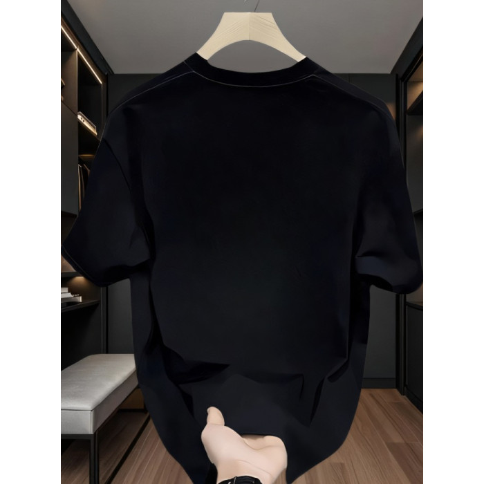 夏季精神小夥新款修身冰絲光棉男T恤潮牌字母印花短袖高品質半袖