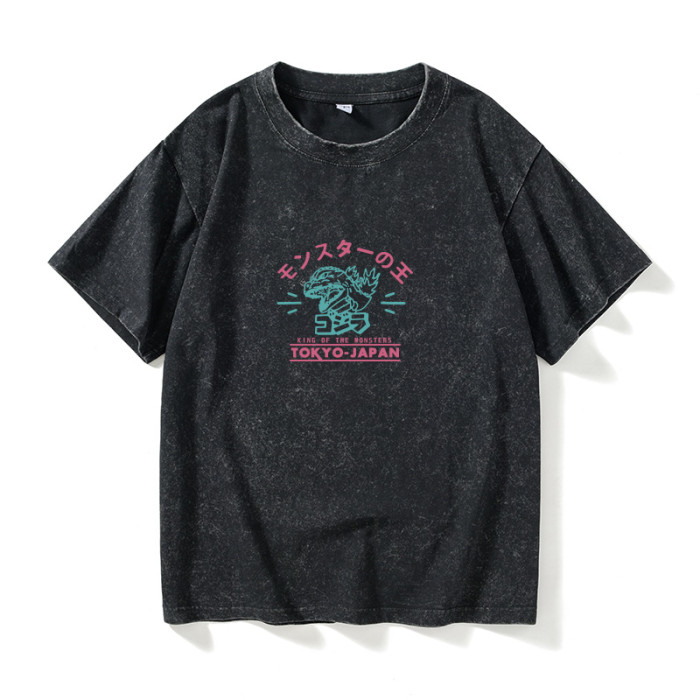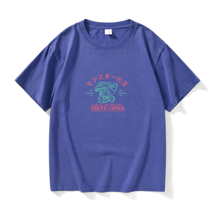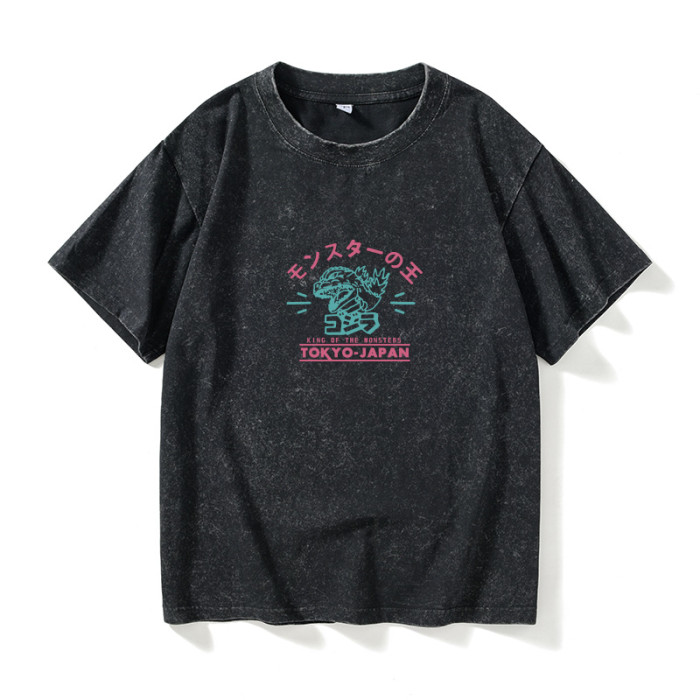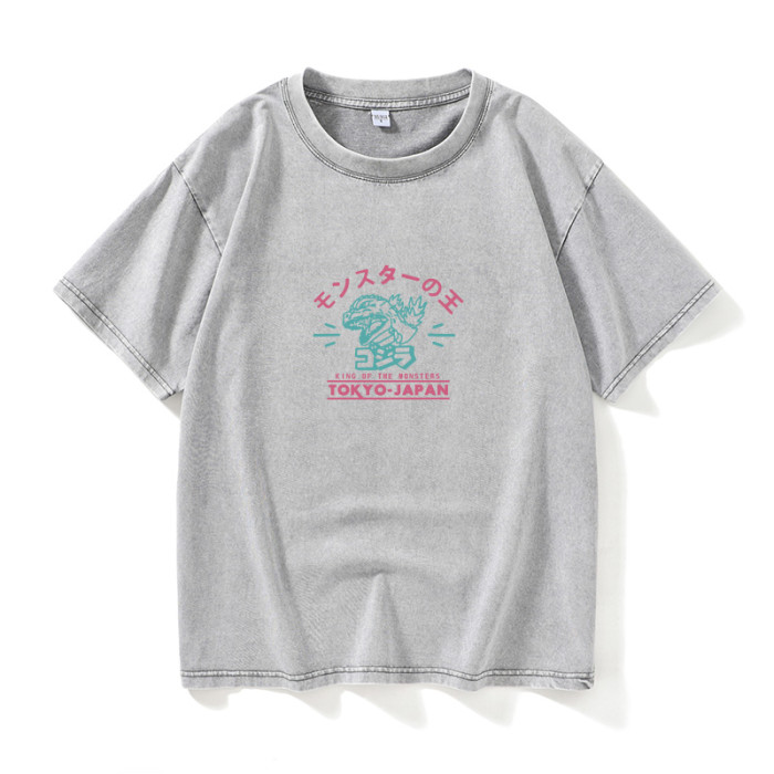 哥斯拉怪獸喪系慵懶風休閒男T恤短袖個性衣服女男圓領大碼寬松夏
