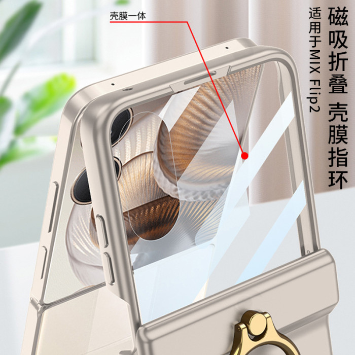 適用小米mixflip2折曡手機殼PC磁吸鉸鏈磨砂指環保護套xmMIXFLIP2