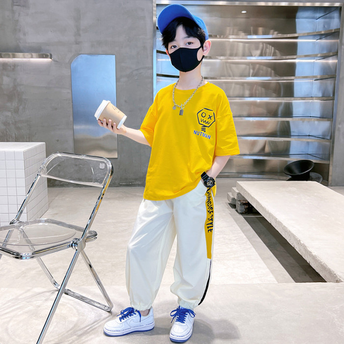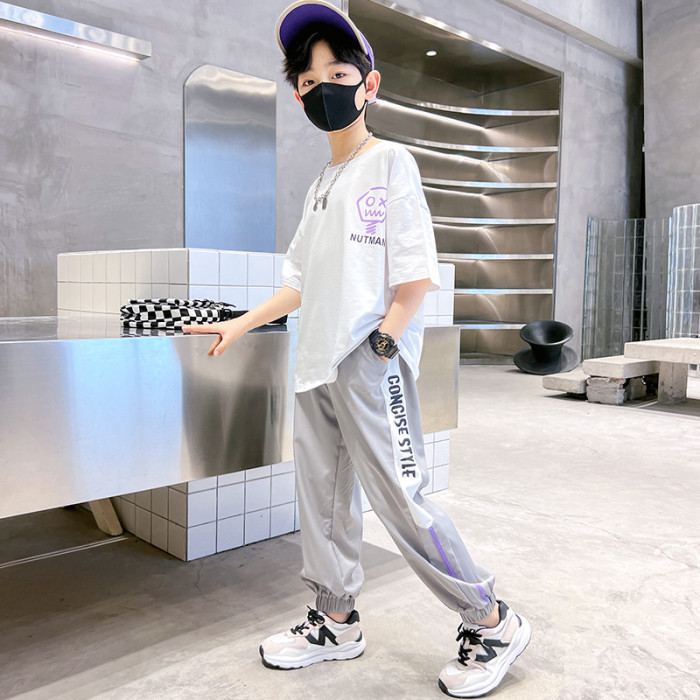 男童夏季套裝2024新款大兒童洋氣帥氣運動休閒搞怪塗鴉短袖兩件套