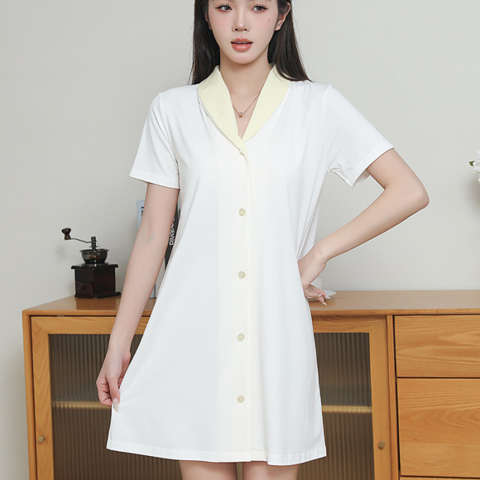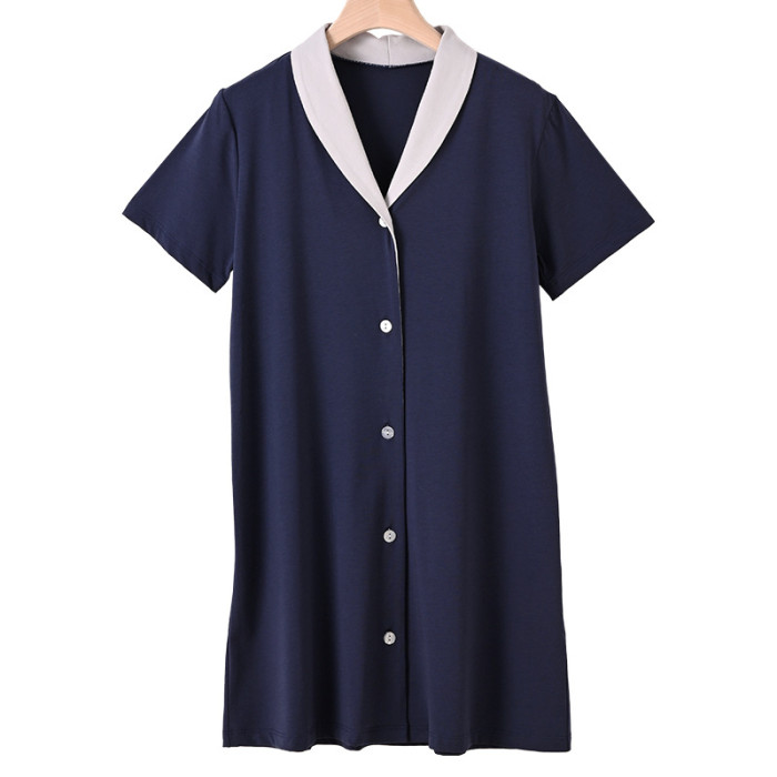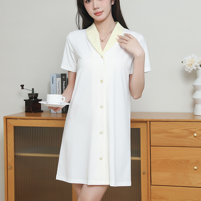 2024新春夏季棉莫中長款女士短袖睡衣裙子家居服睡衣睡裙