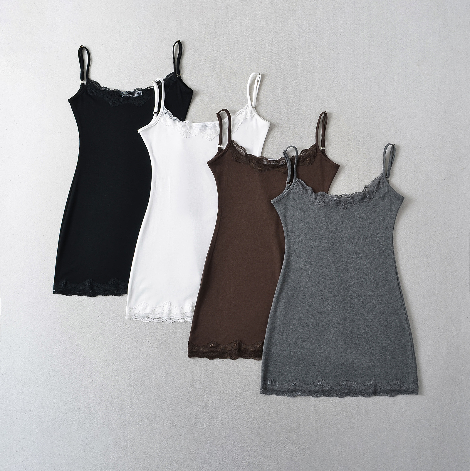 純欲辣妹顯身材吊帶打底連衣裙甜辣網紅性感顯腿長包臀裙蕾絲短裙