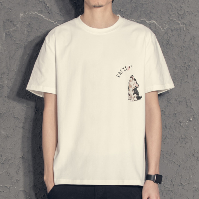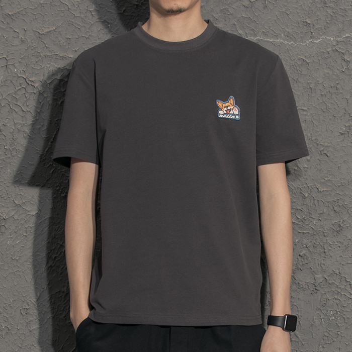 柯基貼布刺綉休閒短袖男t恤2022夏季新款情侶白色打底半袖體恤衫