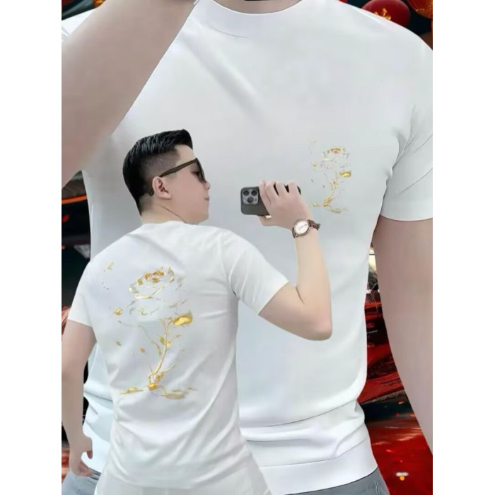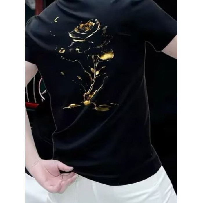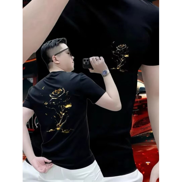 2025爆款短袖男t恤潮牌時尚個性印花金玫瑰休閒夏季高級感男裝潮